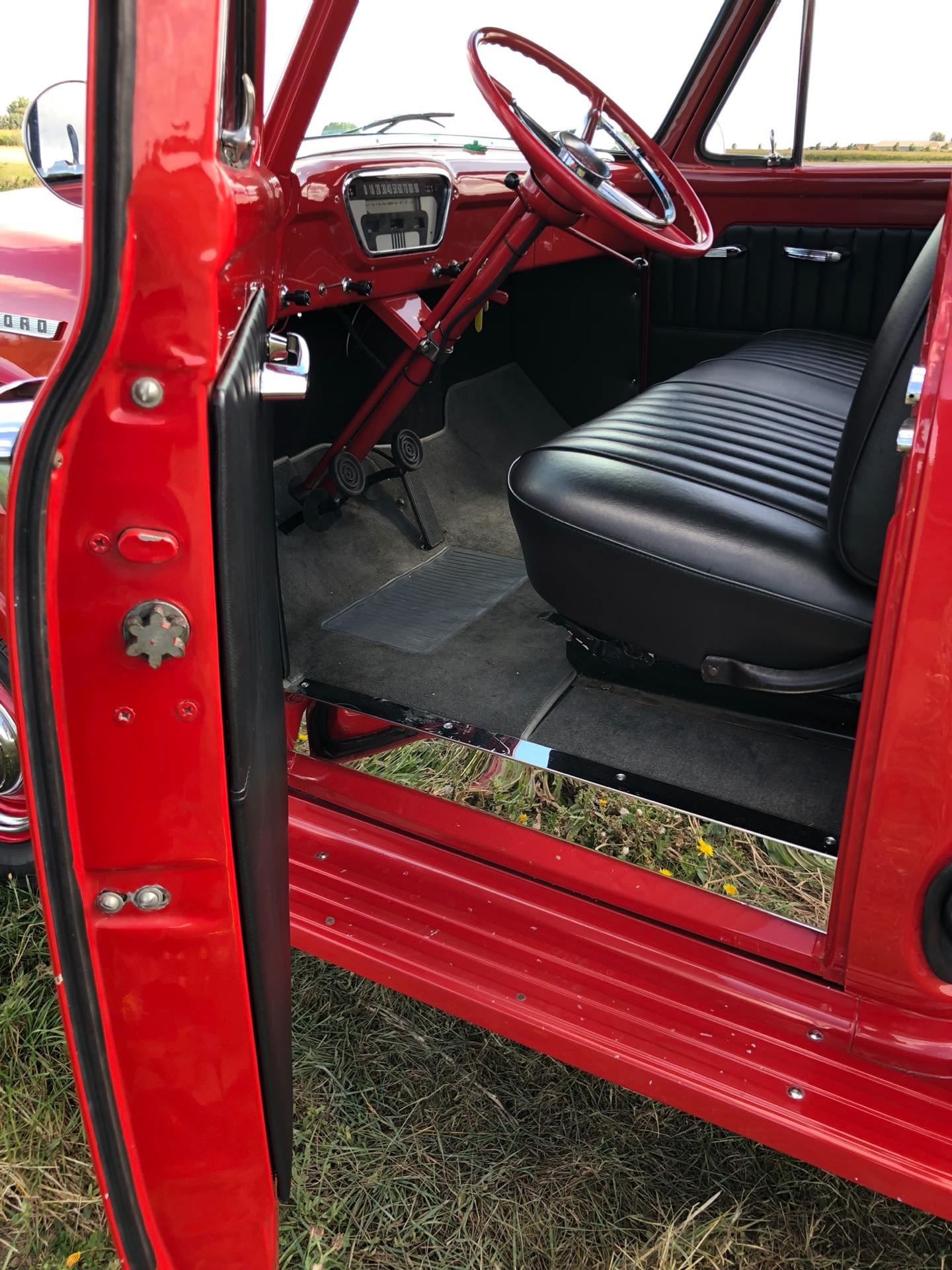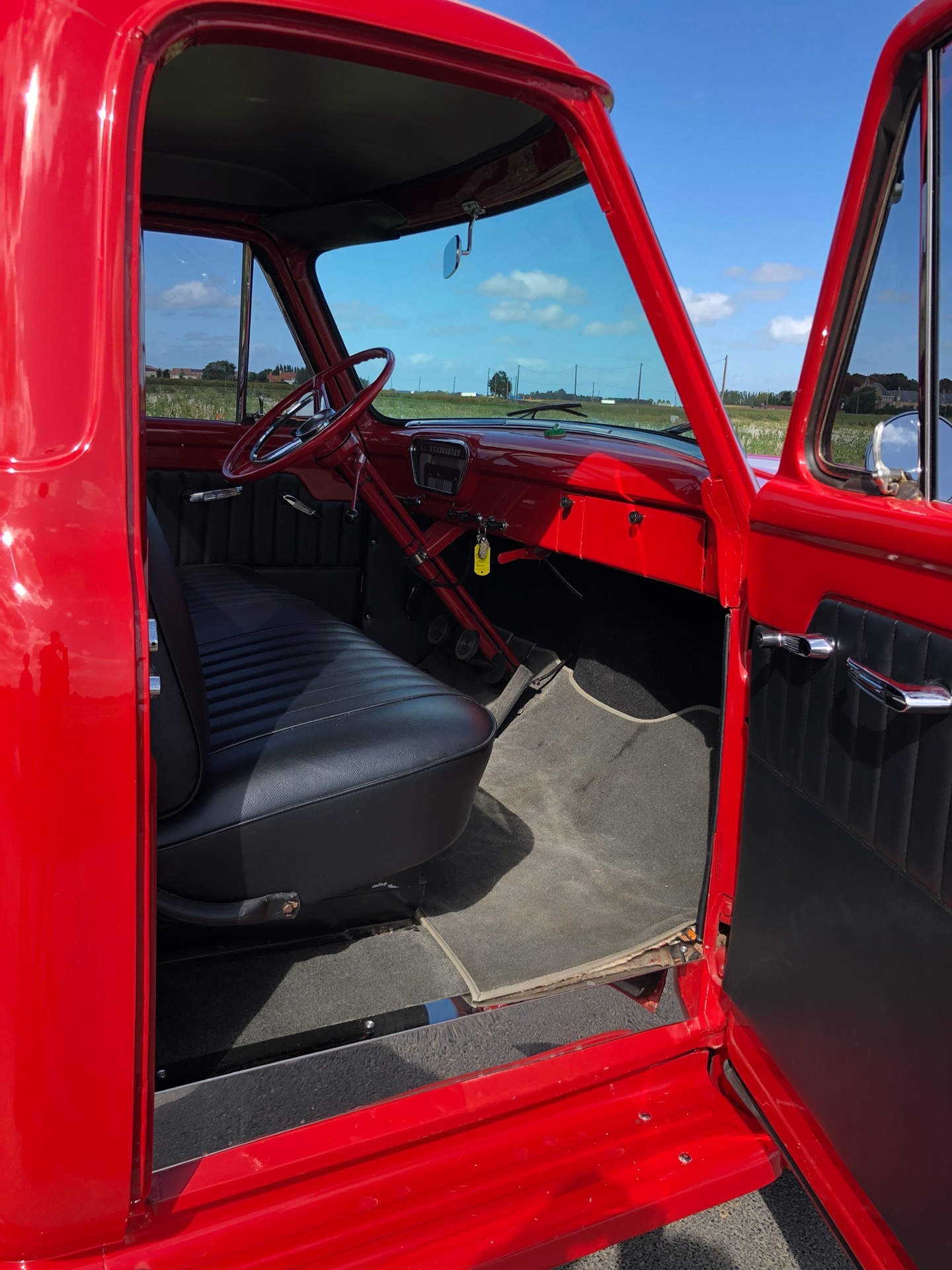 SOLD --- Fully restored pickup. Very good driving Ford F100 Pickup from 1954. Paint is in perfect condition. interior is brand new. original V8 head valve engine with 3 speed on the column transmission. Ideal to use for publicity or transport of a nice motorcycle.