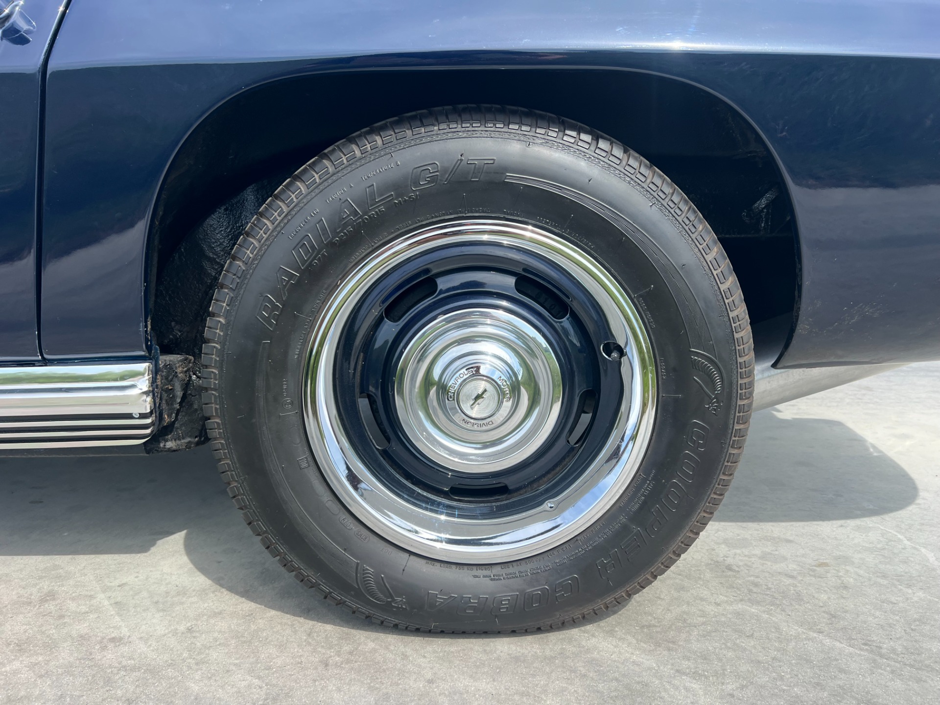 Finished in Daytona Blue this Corvette pairs classic open-top styling with a deep, metallic blue finish that highlights its sculpted lines. It features a sleek front end with hidden pop-up headlights, smooth hood, chrome bumpers, and these special rally wheels. With the top down, it's a striking blend of performance and elegance.
