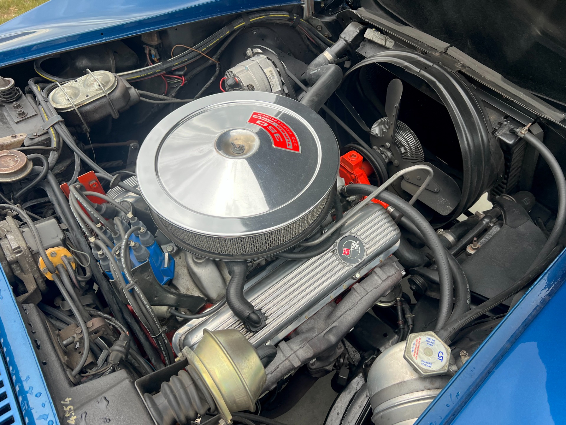 Under the hood, this 1970 Corvette is powered by its original LT1 350 cubic-inch V8, a highly sought-after engine introduced that year. Factory-rated at 370 horsepower, the LT1 was known for its solid-lifter camshaft, high-revving nature, and strong performance credentials, making it one of the most desirable small-blocks of the era. The engine bay presents cleanly, with correct components and details such as finned aluminum valve covers and the chrome air cleaner with LT1 badging. This Corvette's mechanical condition reflects careful upkeep, offering both originality and the strong performance expected from a true LT1 car.