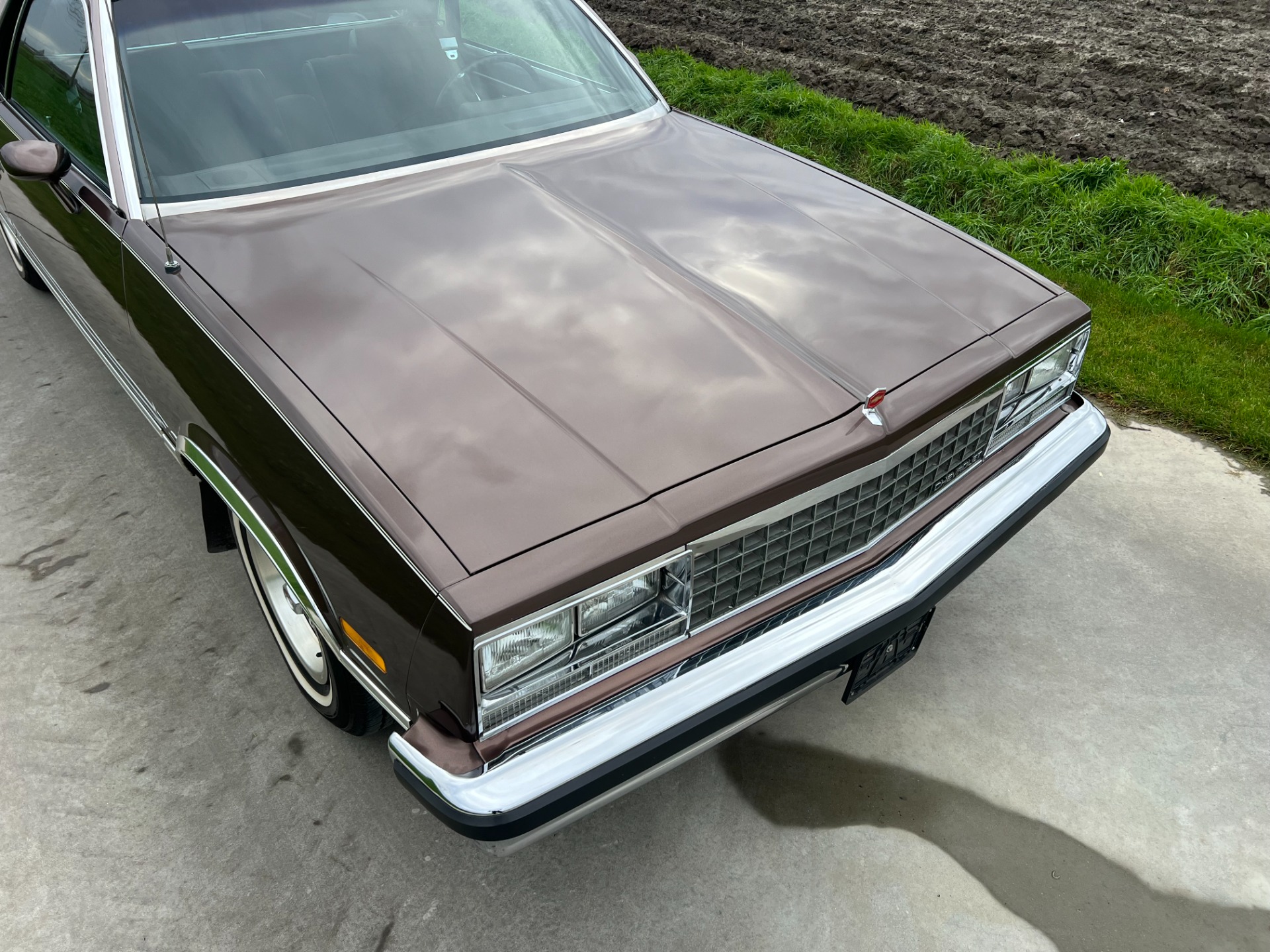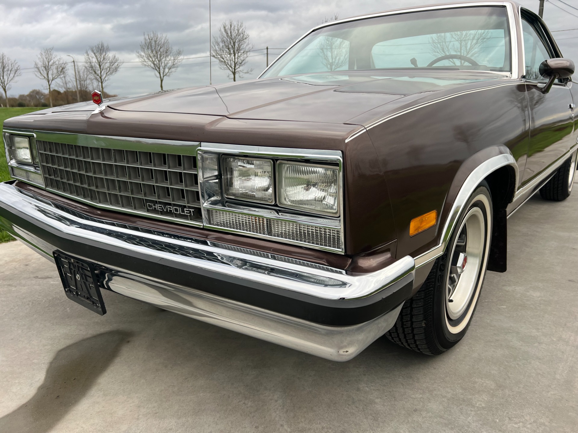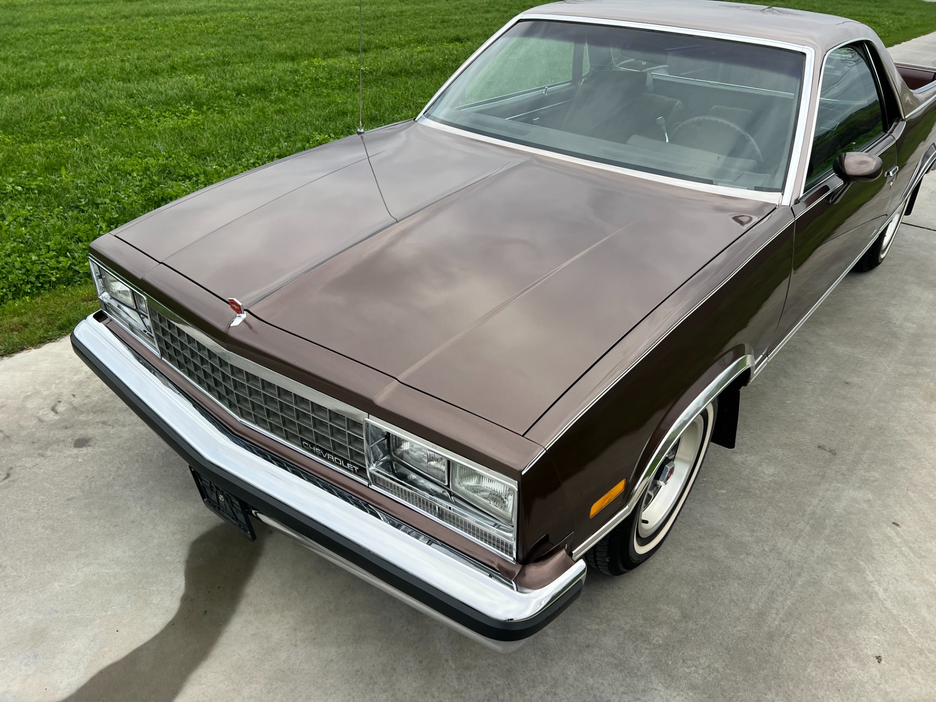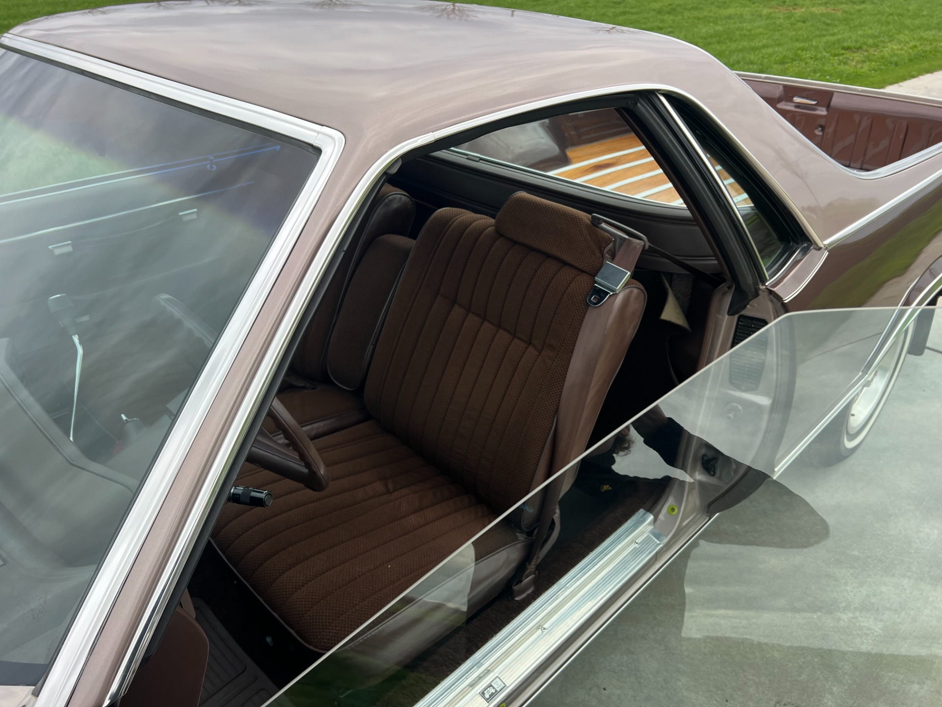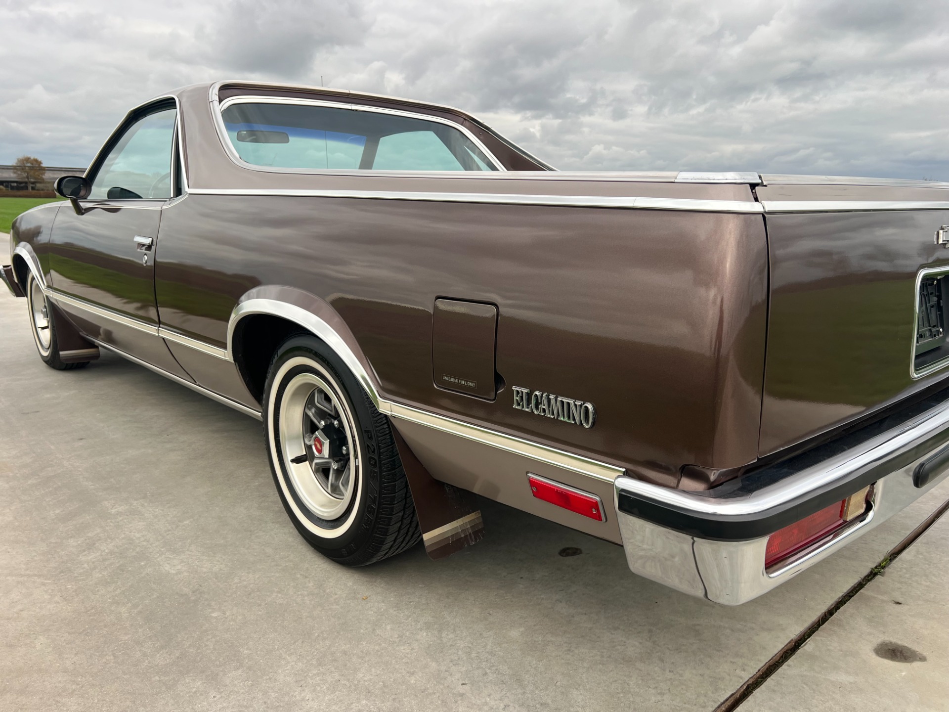 Beautiful 1983 Chevrolet El Camino in excellent condition. Finished in a classic brown metallic paint with clean chrome accents, this El Camino features a straight, rust-free body and period-correct whitewall tires with rally wheels. The exterior presents extremely well, showcasing the sharp G-body lines and well-preserved trim. A great example of a stylish and iconic car-truck hybrid, ready to drive or show.