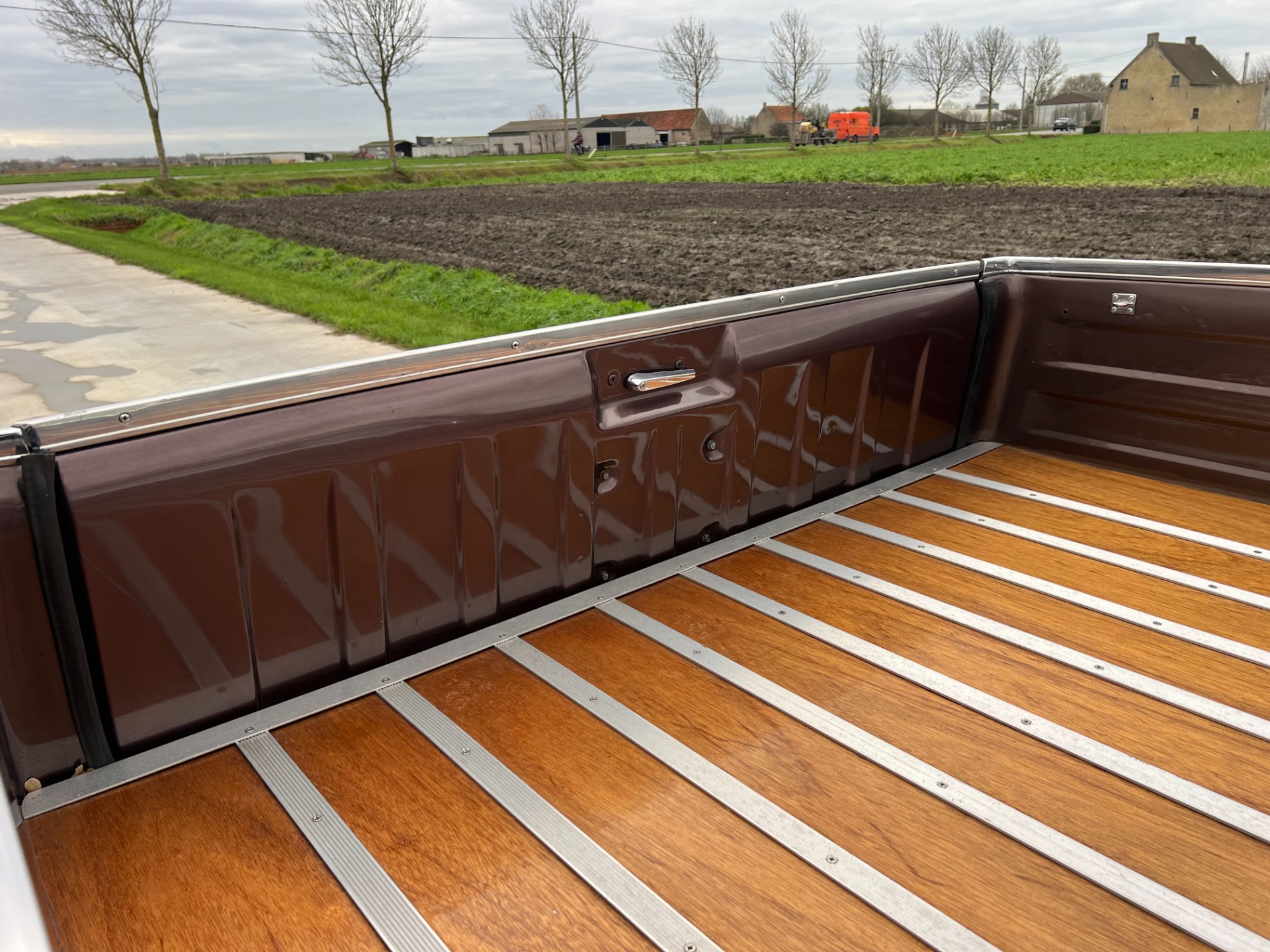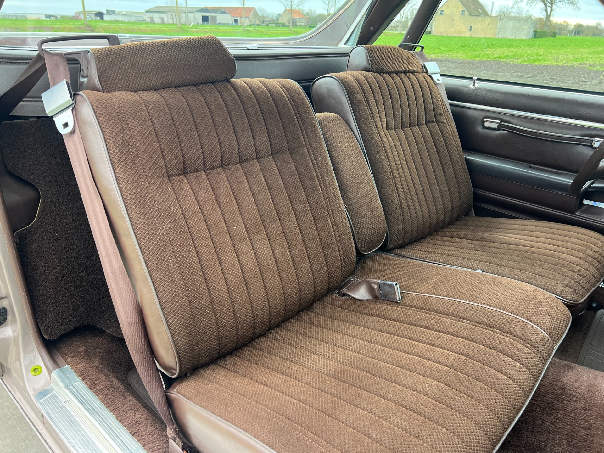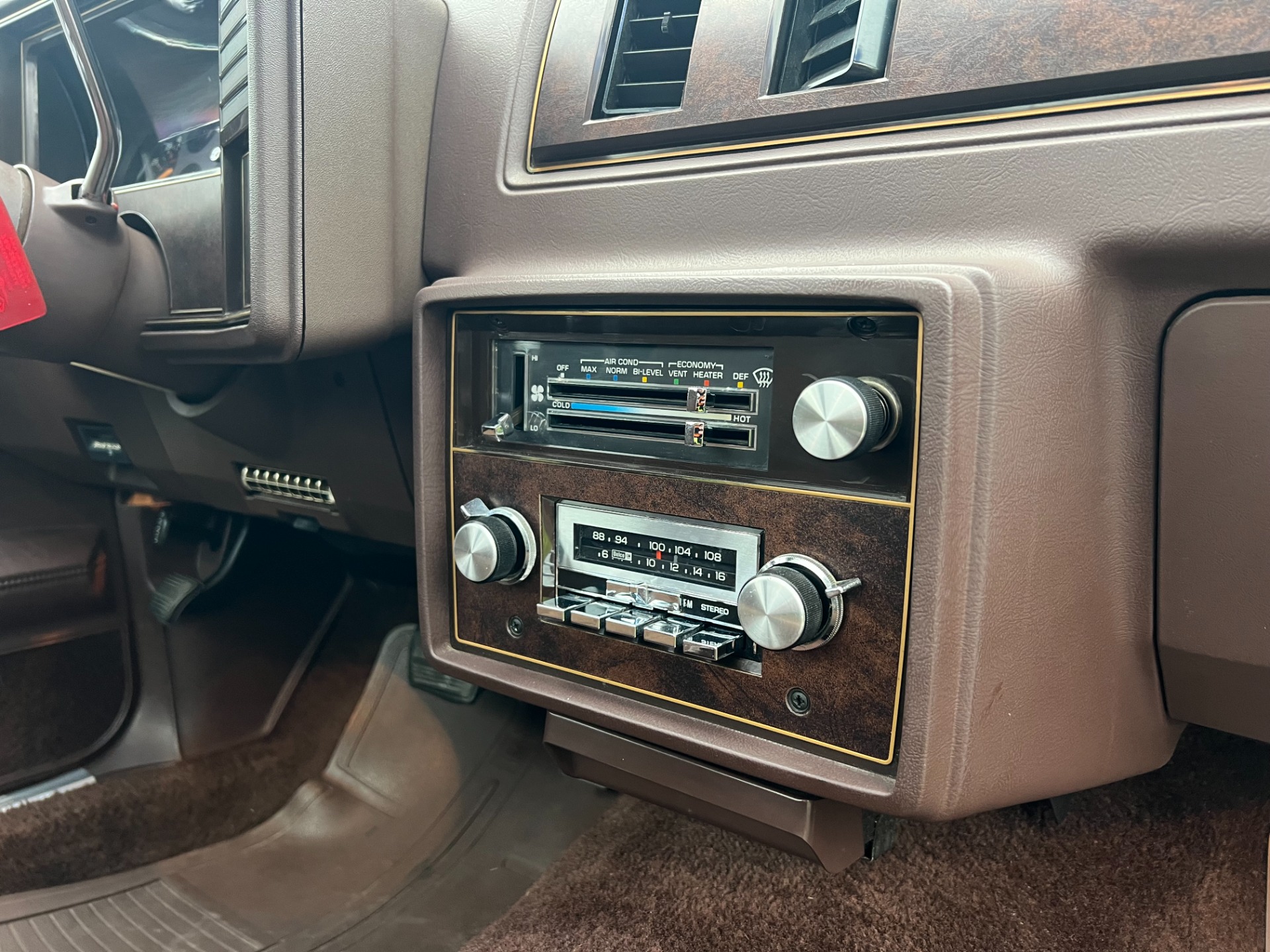 Clean and well-preserved interior featuring original brown upholstery, matching carpets, and classic faux-wood trim. The cabin shows minimal wear, with a tidy dashboard, functional controls, and a period-correct factory radio. Bench seat, door panels, and headliner are all in excellent condition, reflecting careful ownership and true originality throughout.