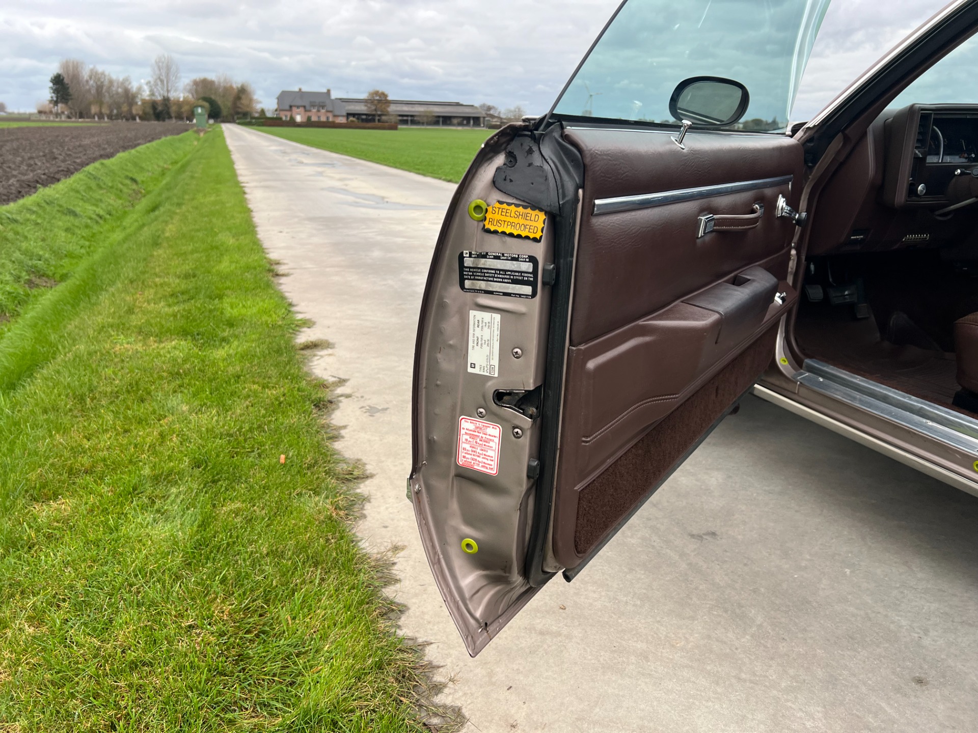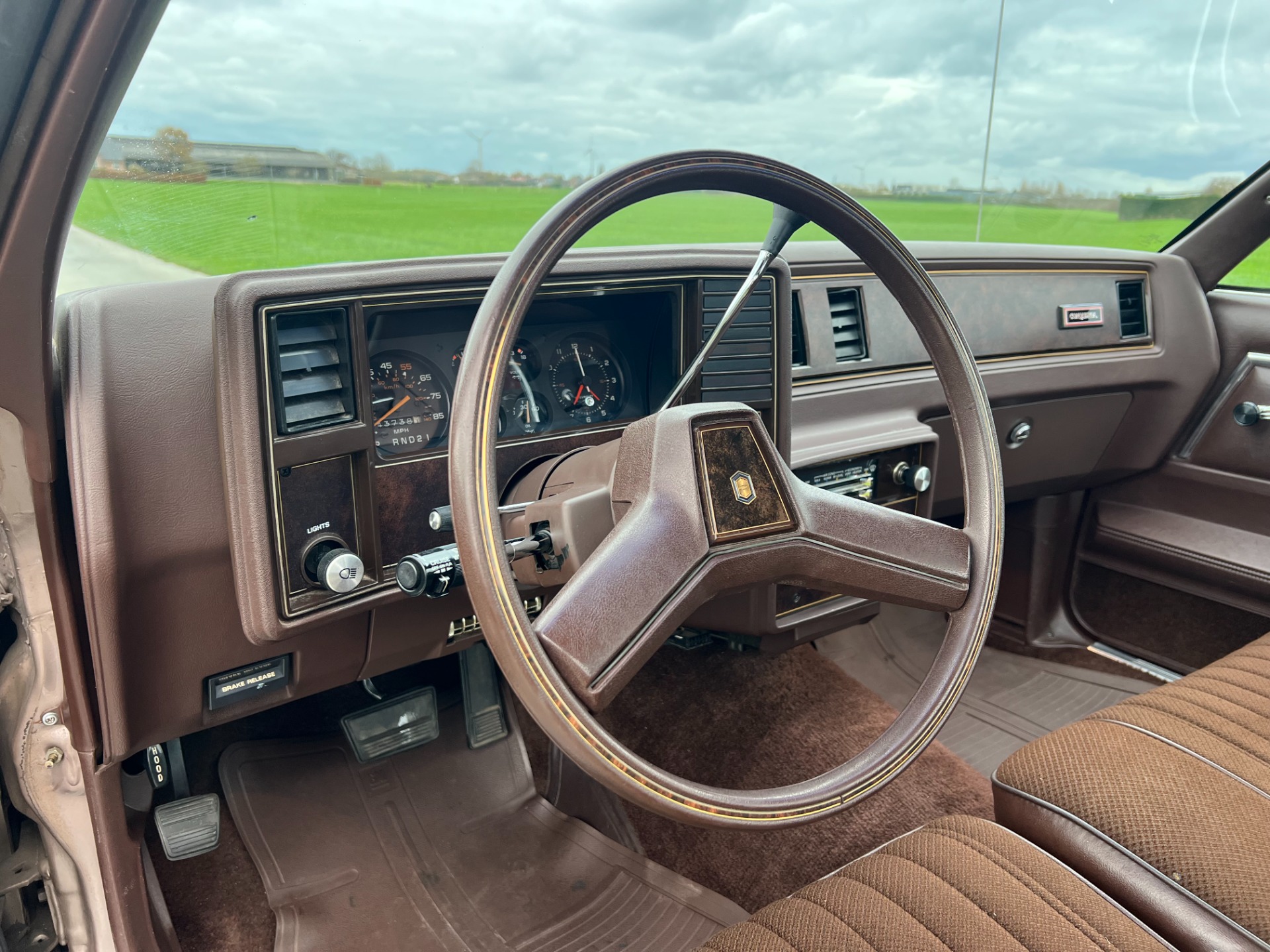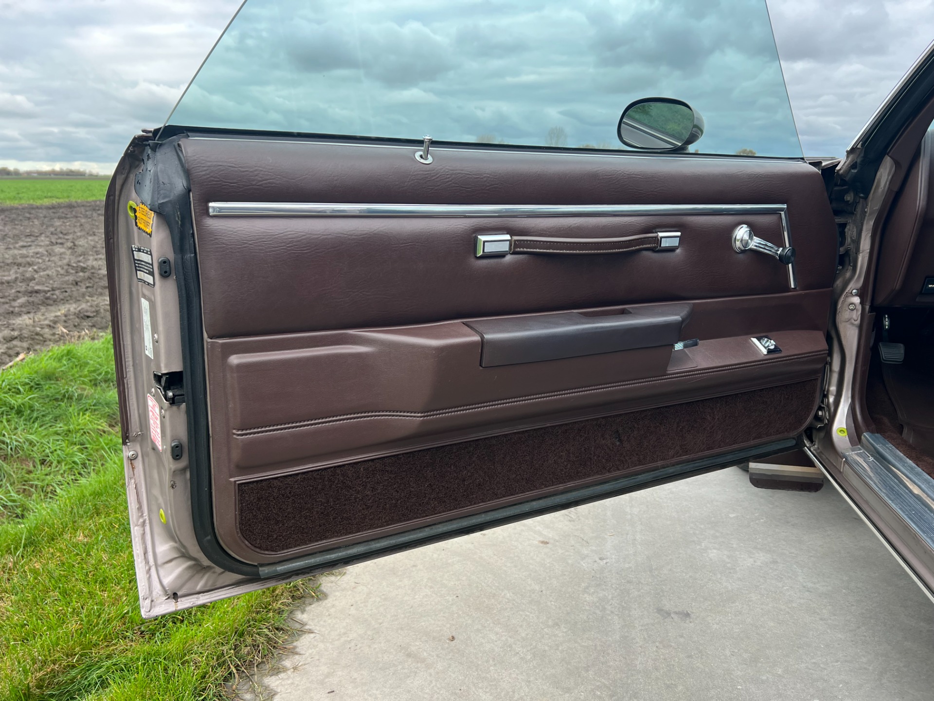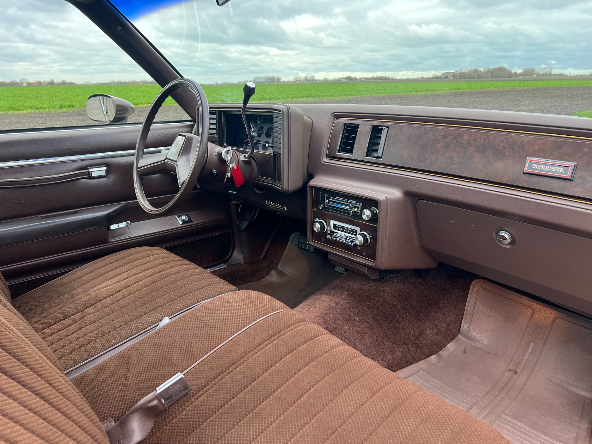 Clean and well-preserved interior featuring original brown upholstery, matching carpets, and classic faux-wood trim. The cabin shows minimal wear, with a tidy dashboard, functional controls, and a period-correct factory radio. Bench seat, door panels, and headliner are all in excellent condition, reflecting careful ownership and true originality throughout.