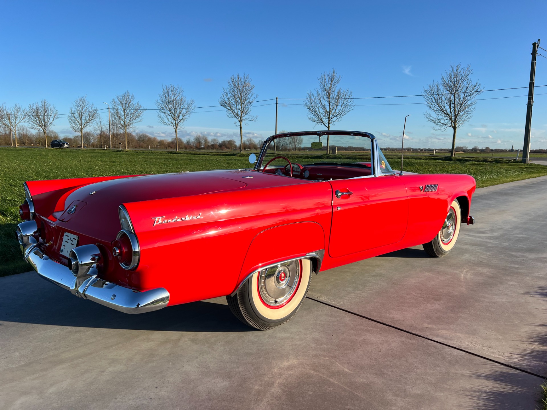 Price on request --- Very nice and comfortable driving 1955 Ford Thunderbird finished in Torch red, which is its original color according to the data plates.