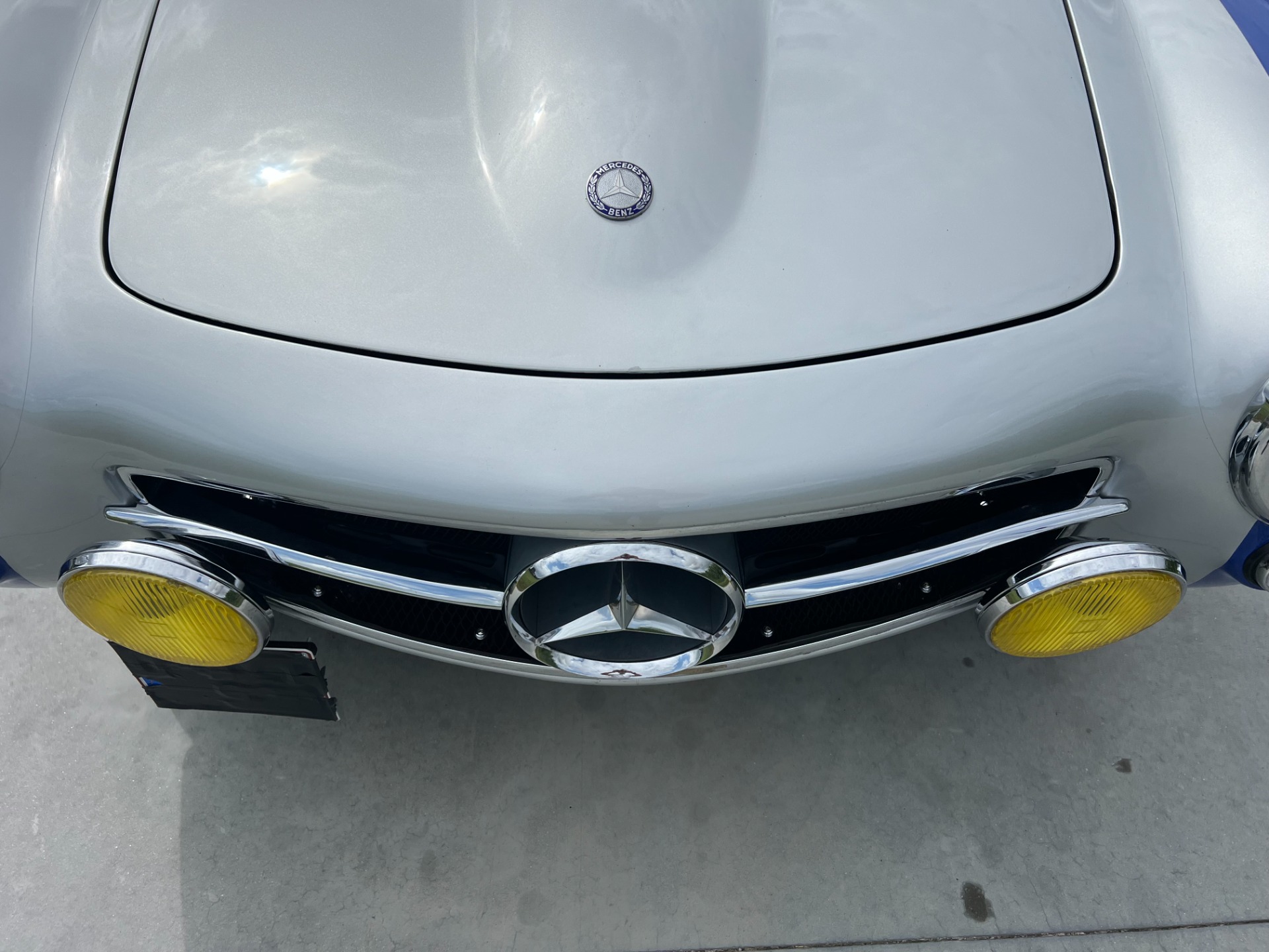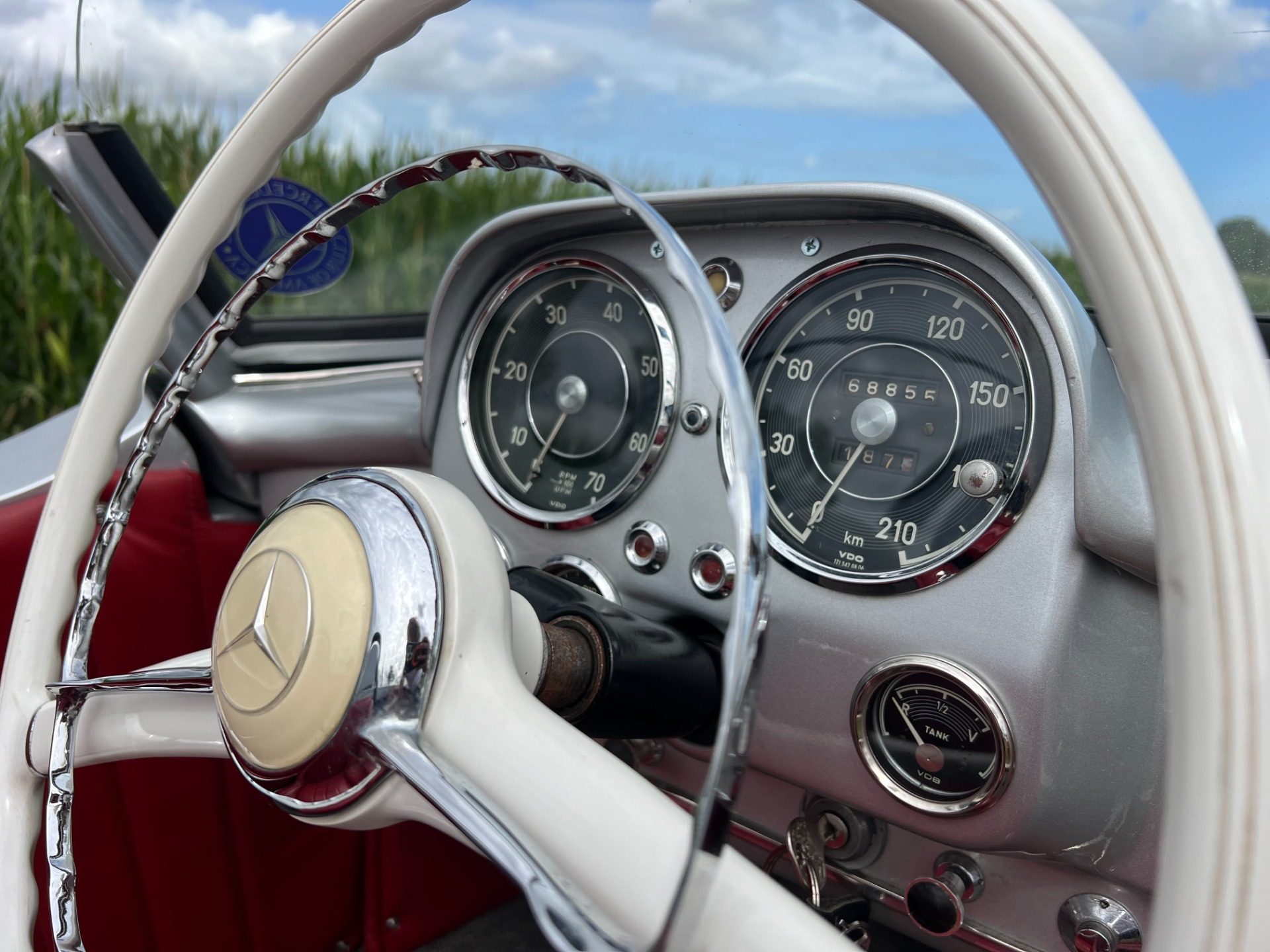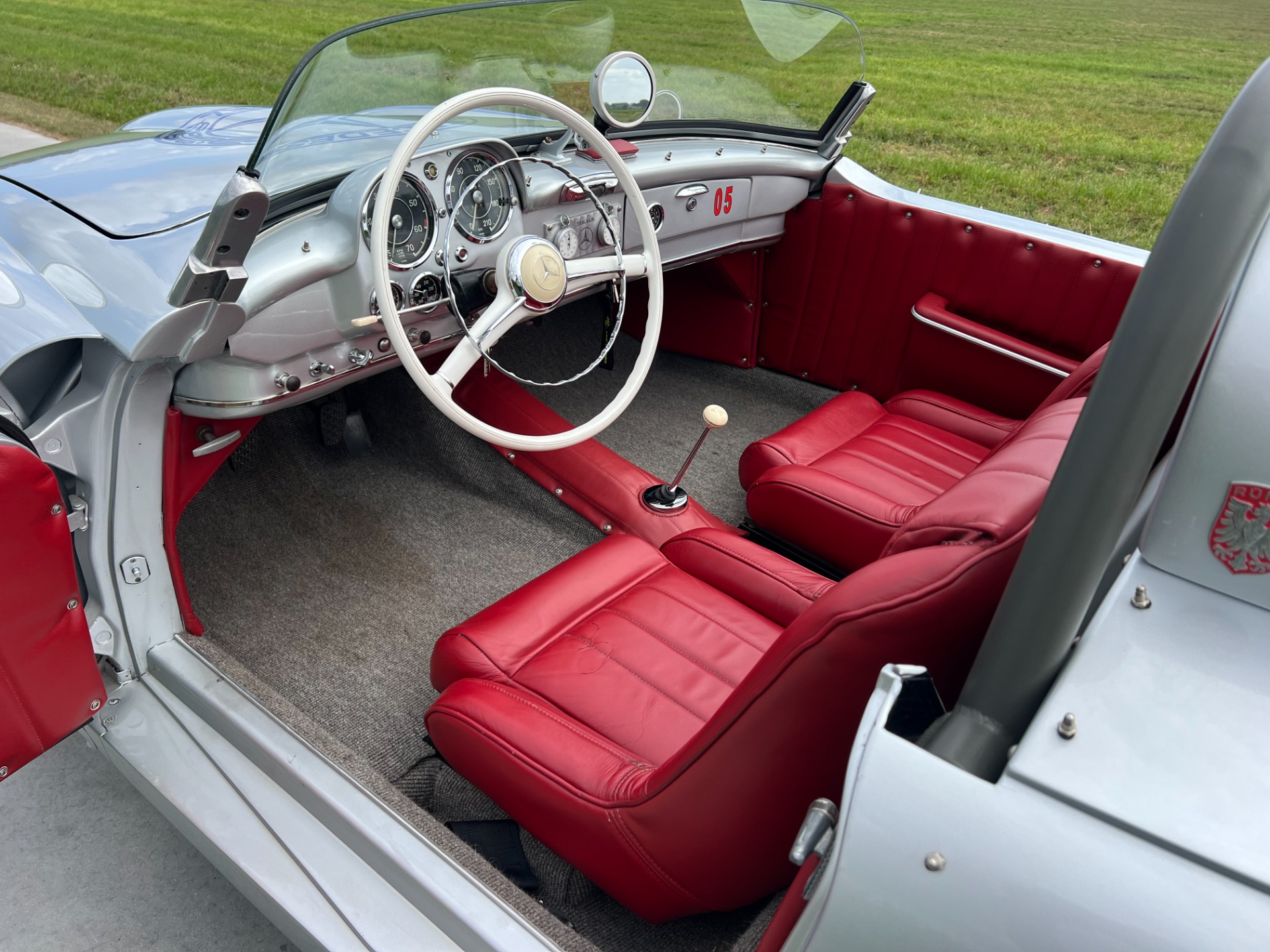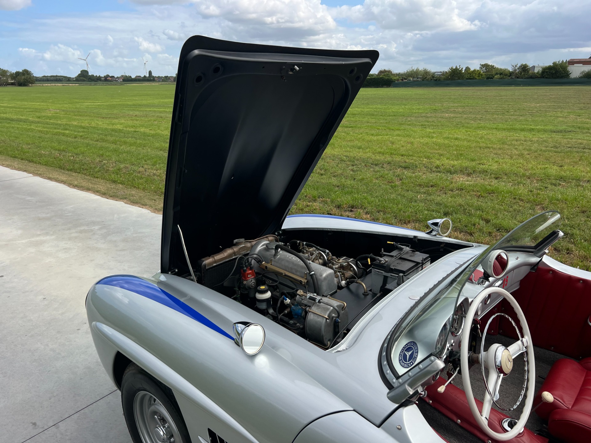 Mechanically, the Mercedes-Benz 190SL is known for its robust and reliable, original 1.9L inline-4 (M121),, and this example has been upgraded for spirited driving. The engine bay shows dual side-draft weber carburetors with performance air filters which improve throttle response and power over the original single-carb setup.
