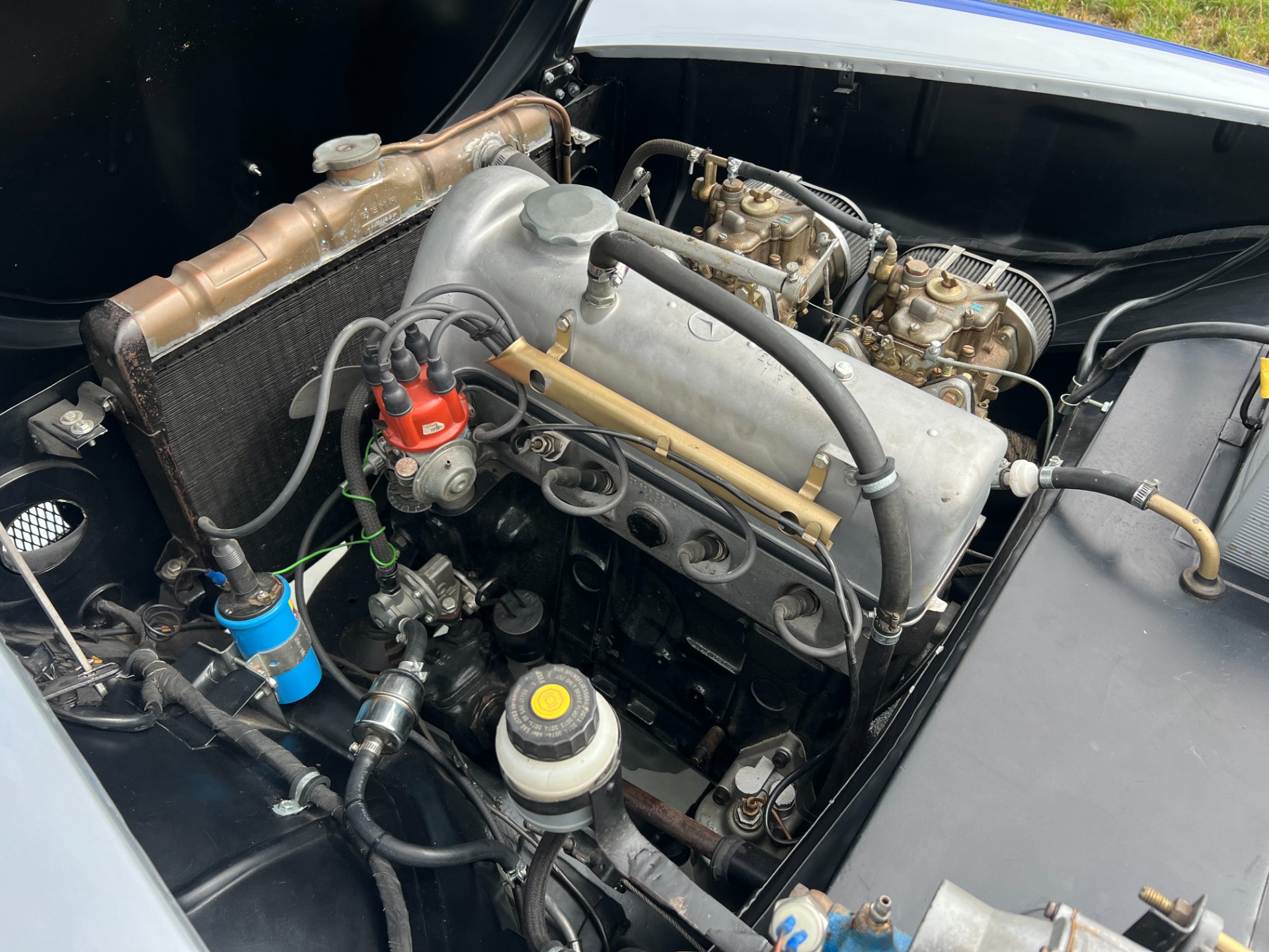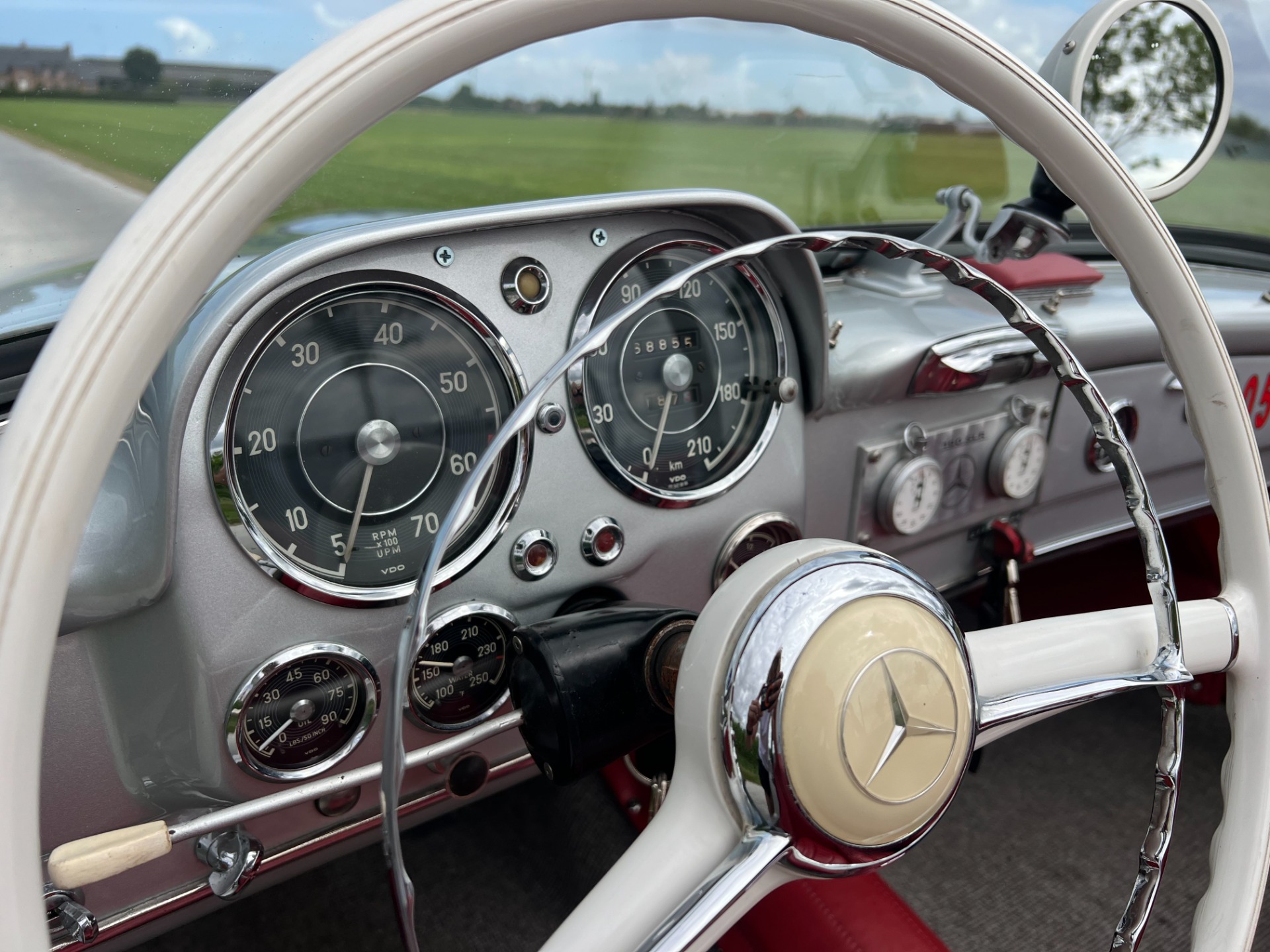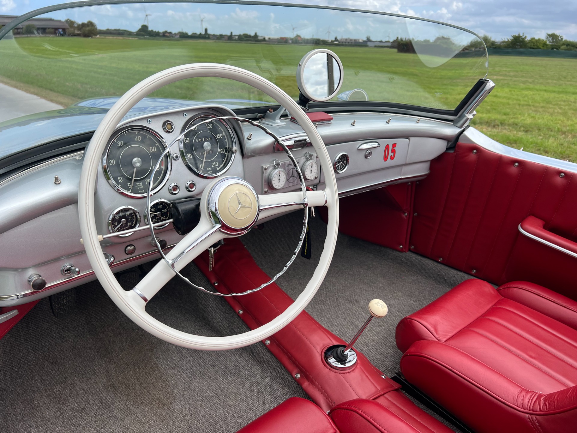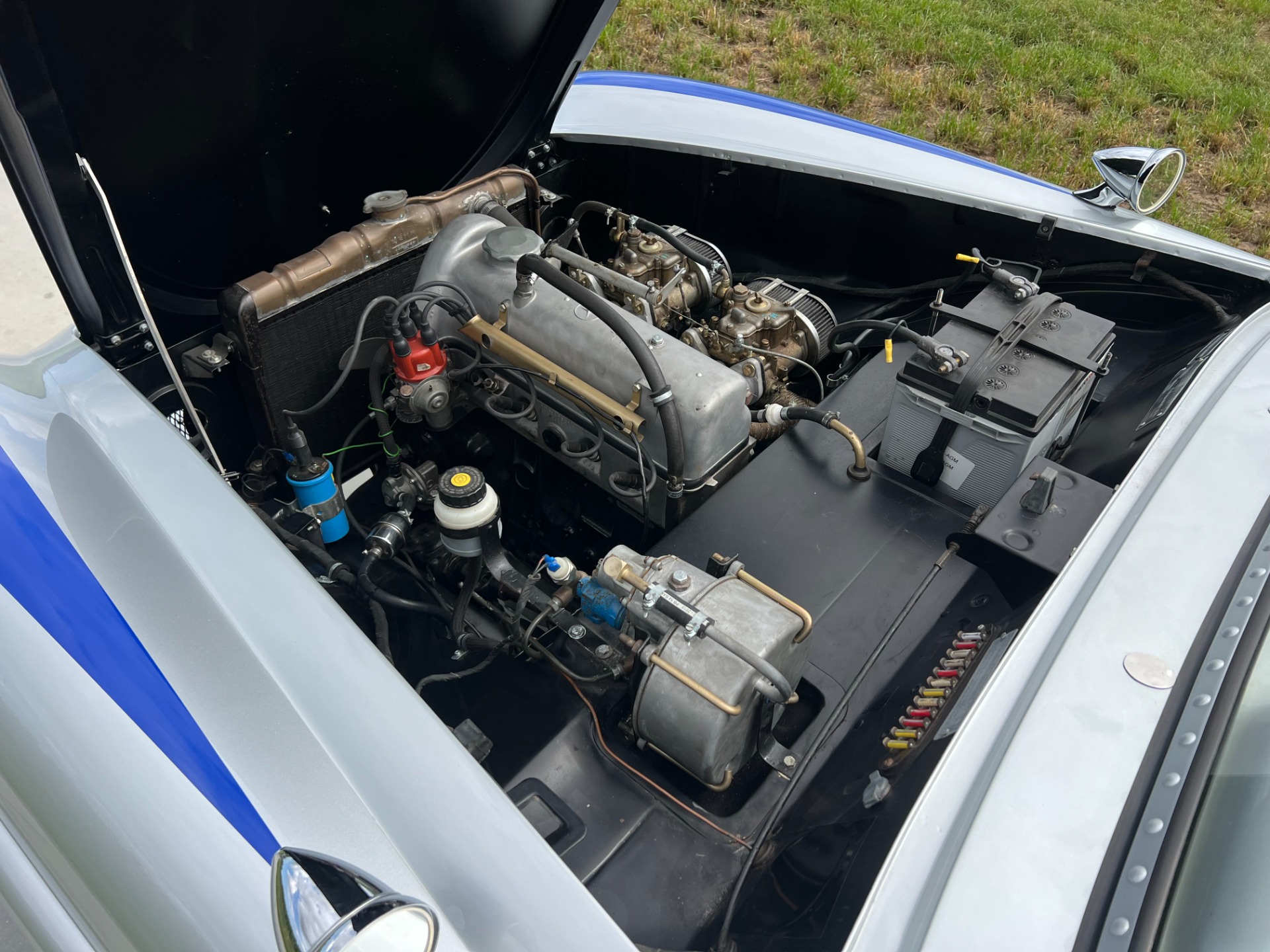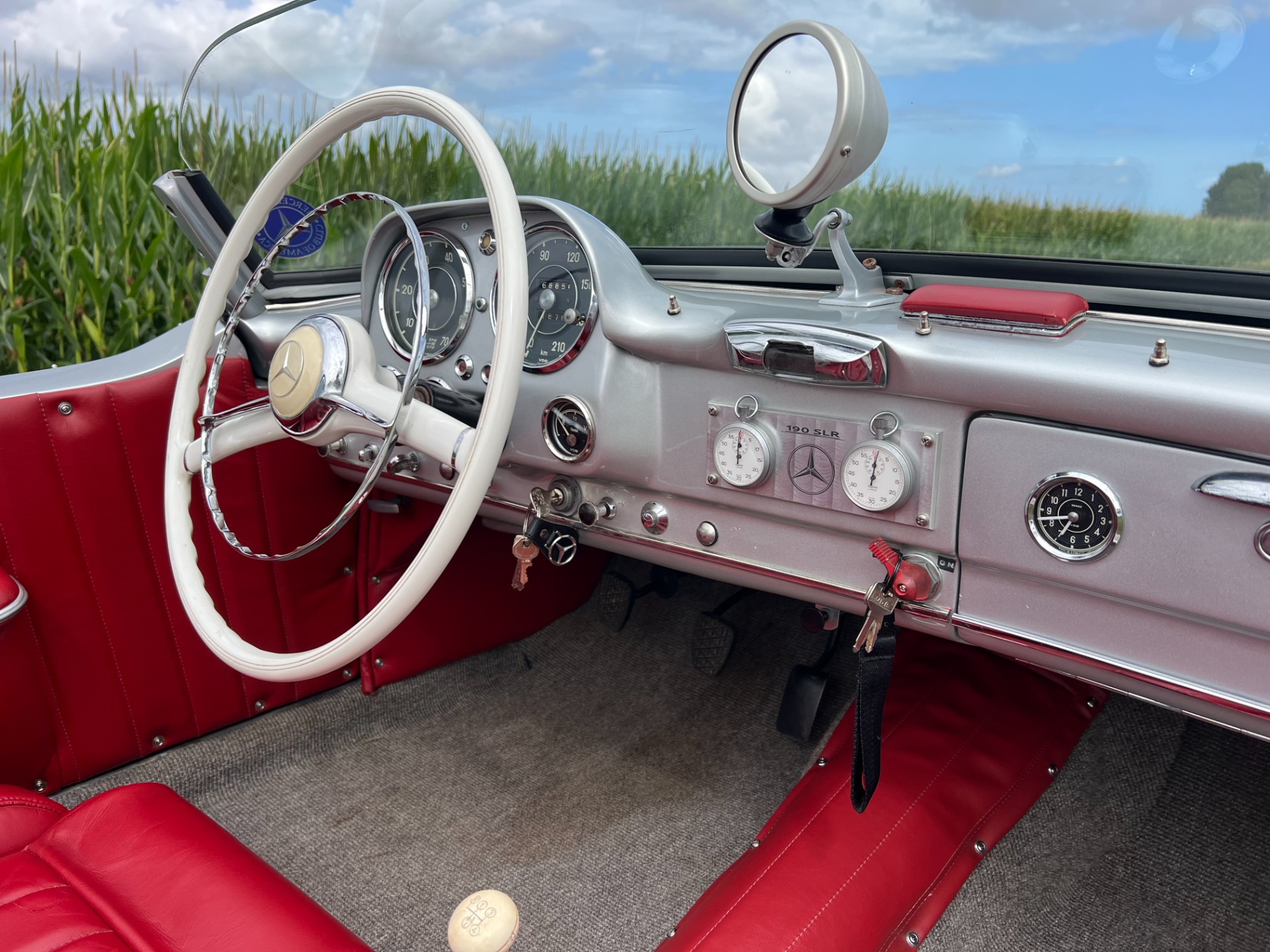 Mechanically, the Mercedes-Benz 190SL is known for its robust and reliable, original 1.9L inline-4 (M121),, and this example has been upgraded for spirited driving. The engine bay shows dual side-draft weber carburetors with performance air filters which improve throttle response and power over the original single-carb setup.
