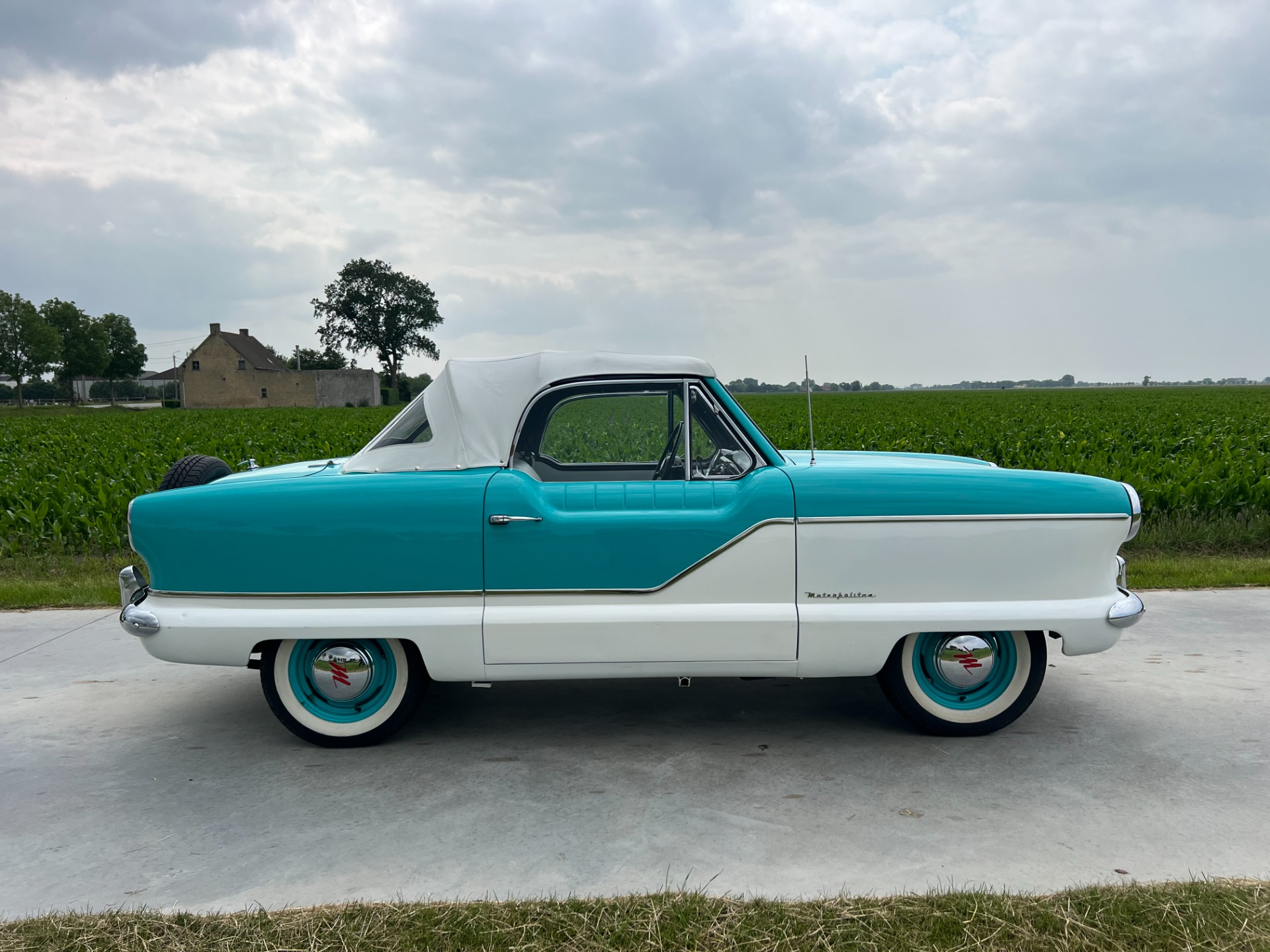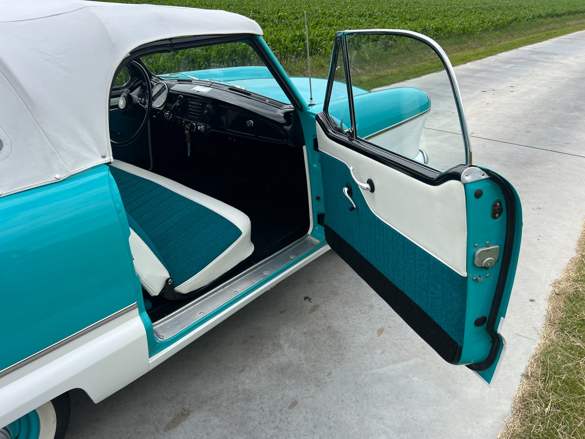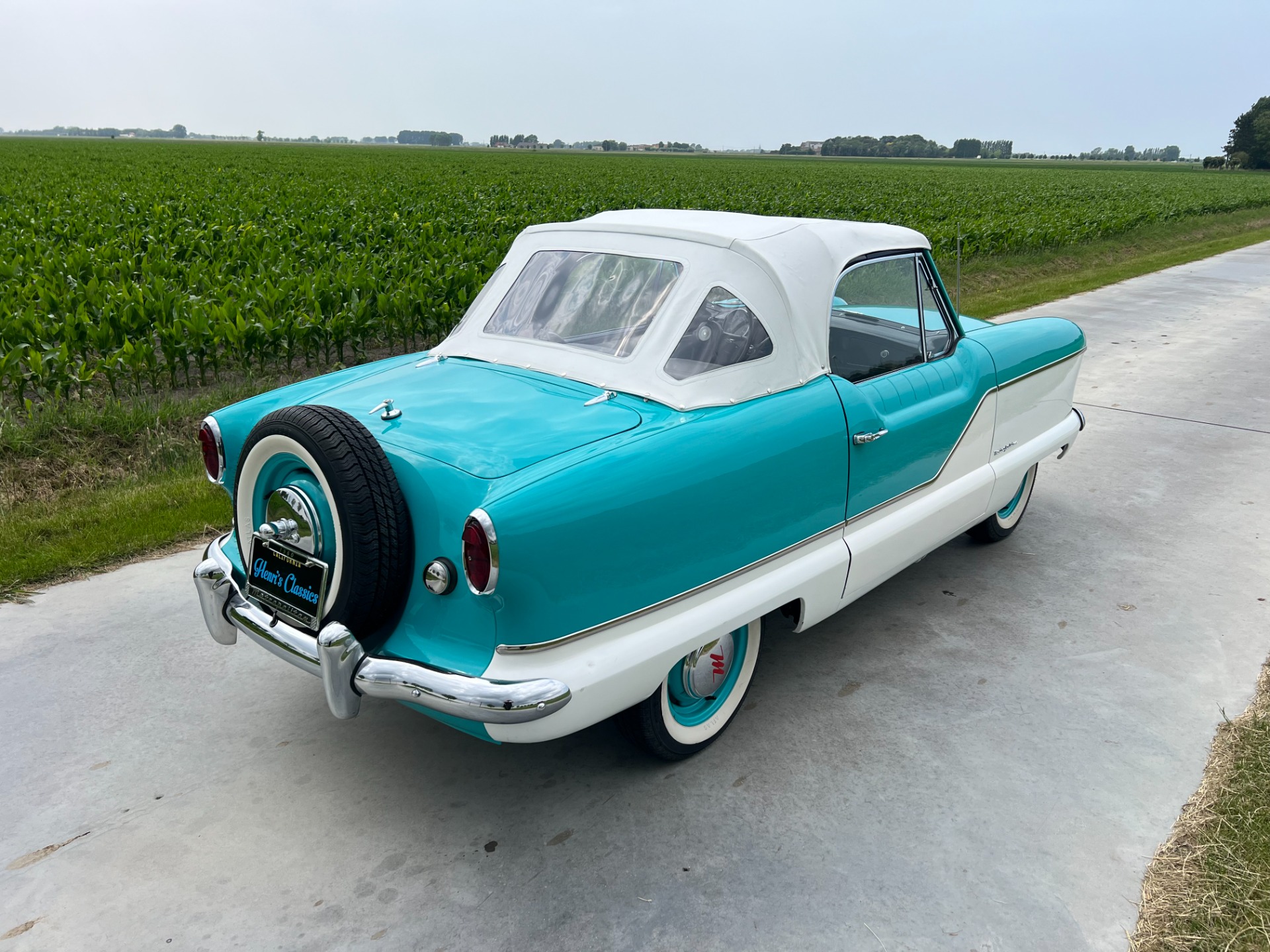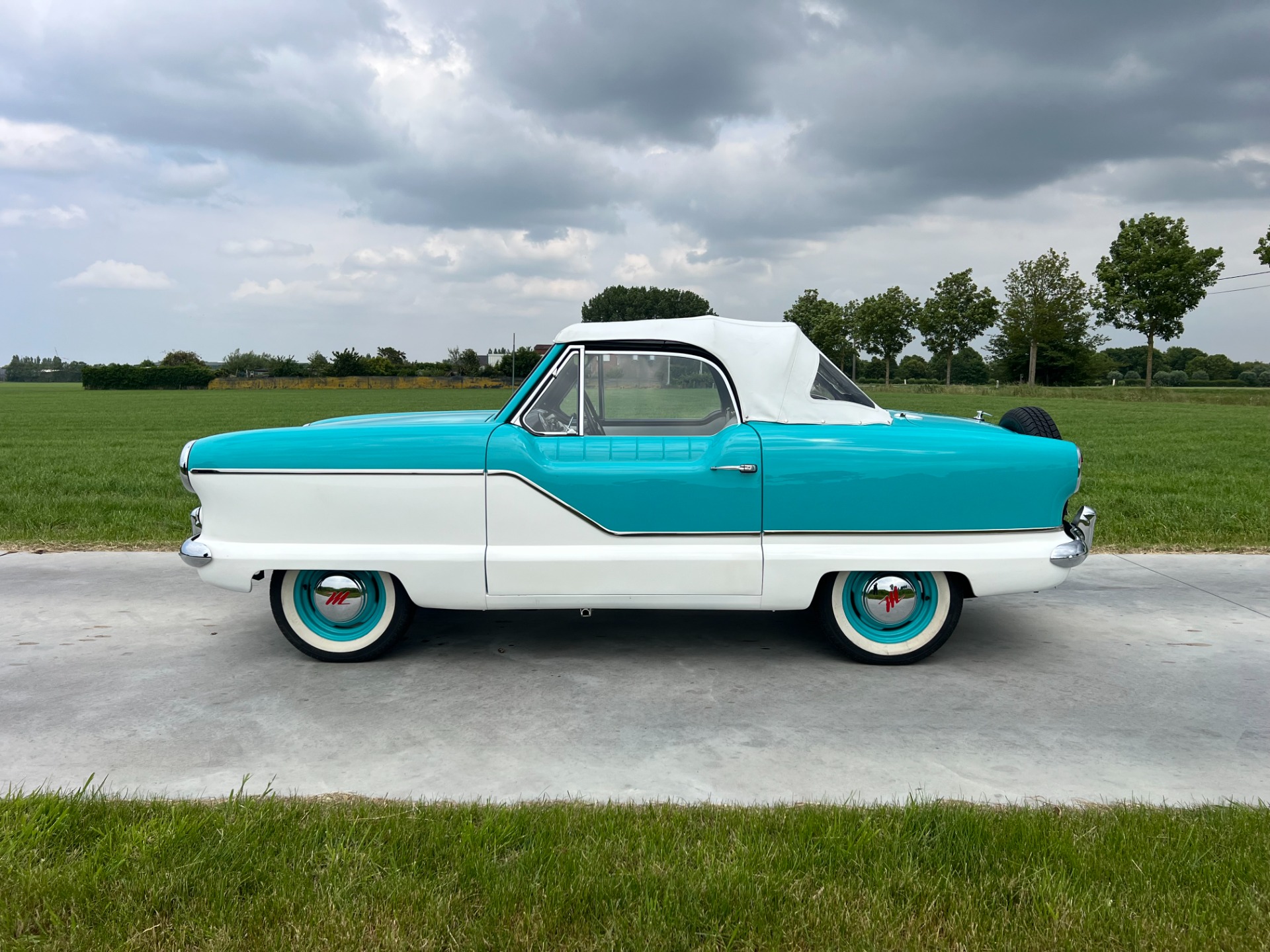 New interior in this cute Nash. The blue interior matches the exterior lovely. There are no flaws at all on the seats, carpets or roof lining.