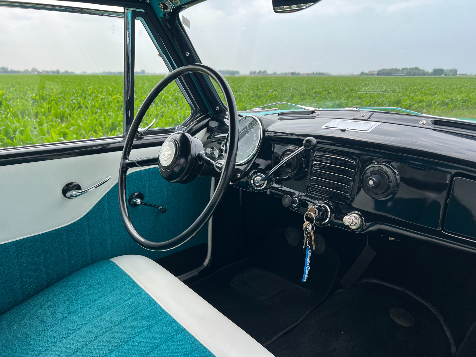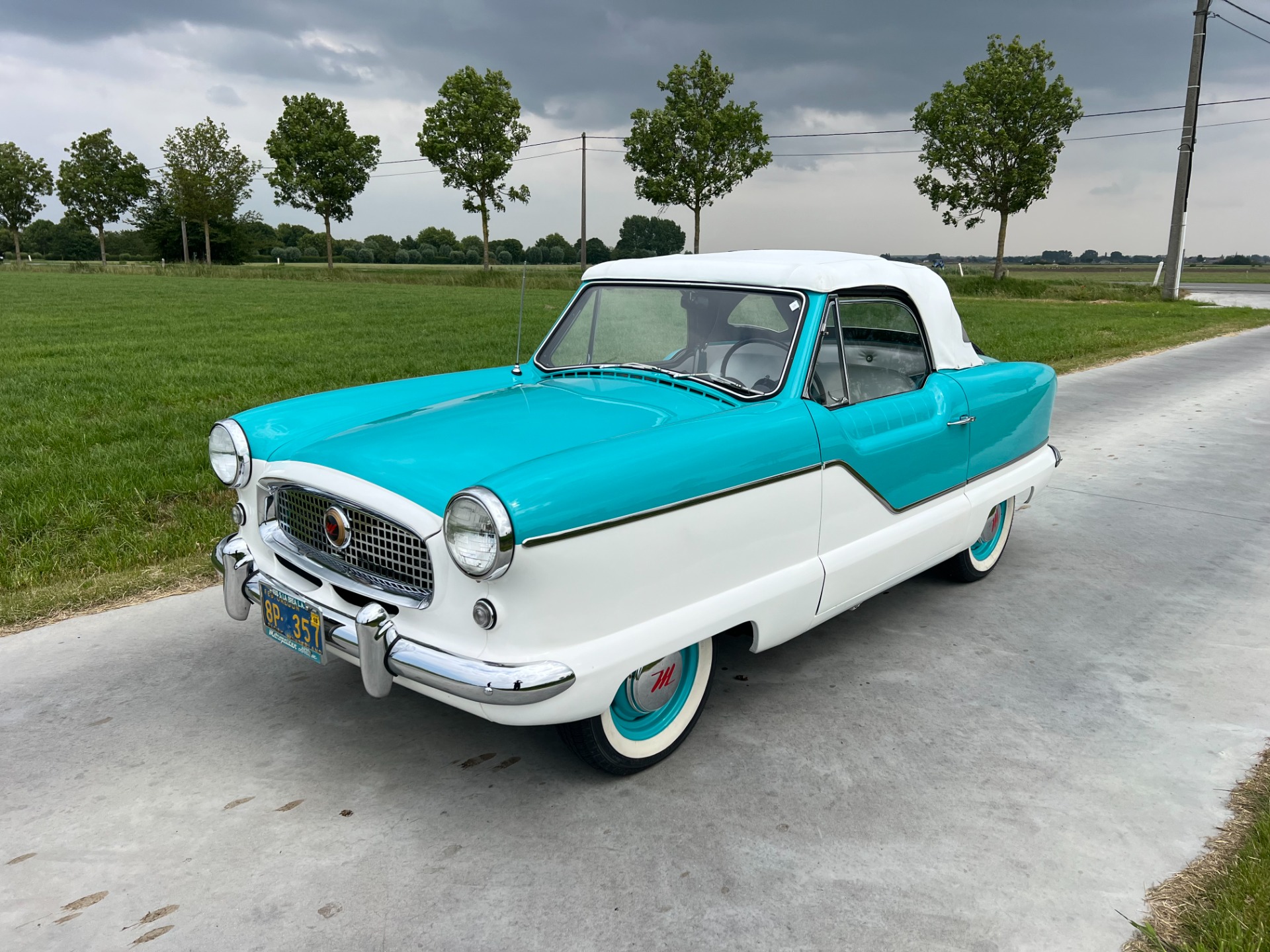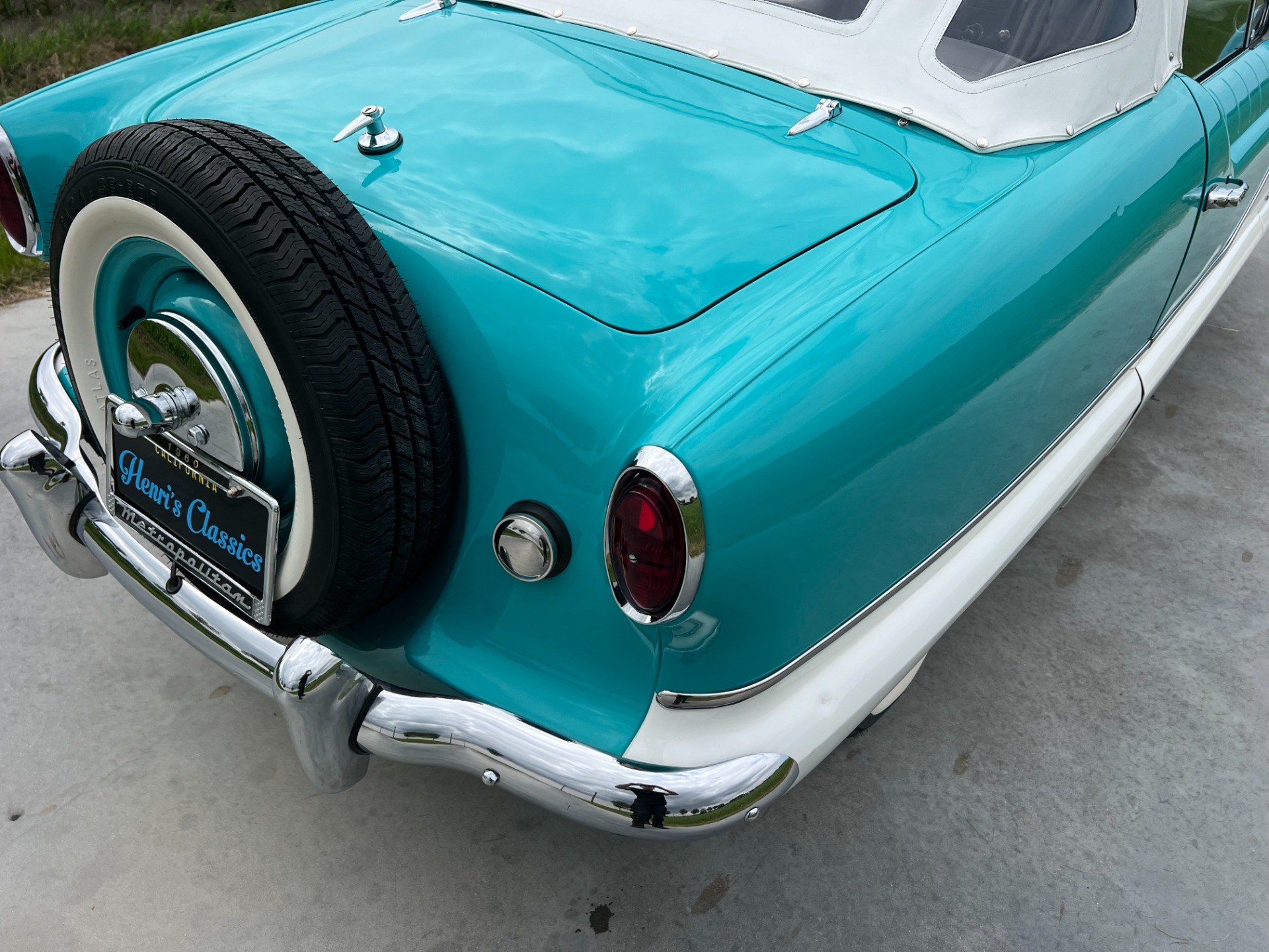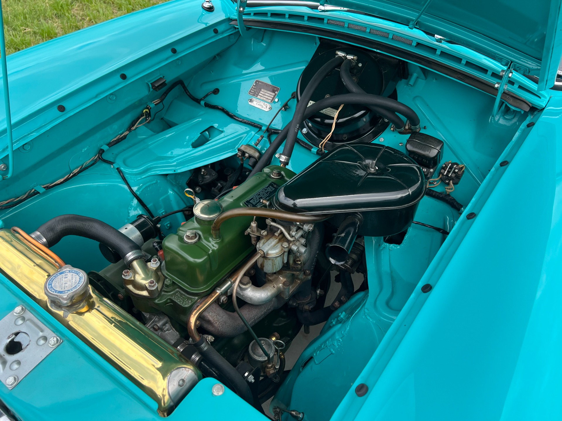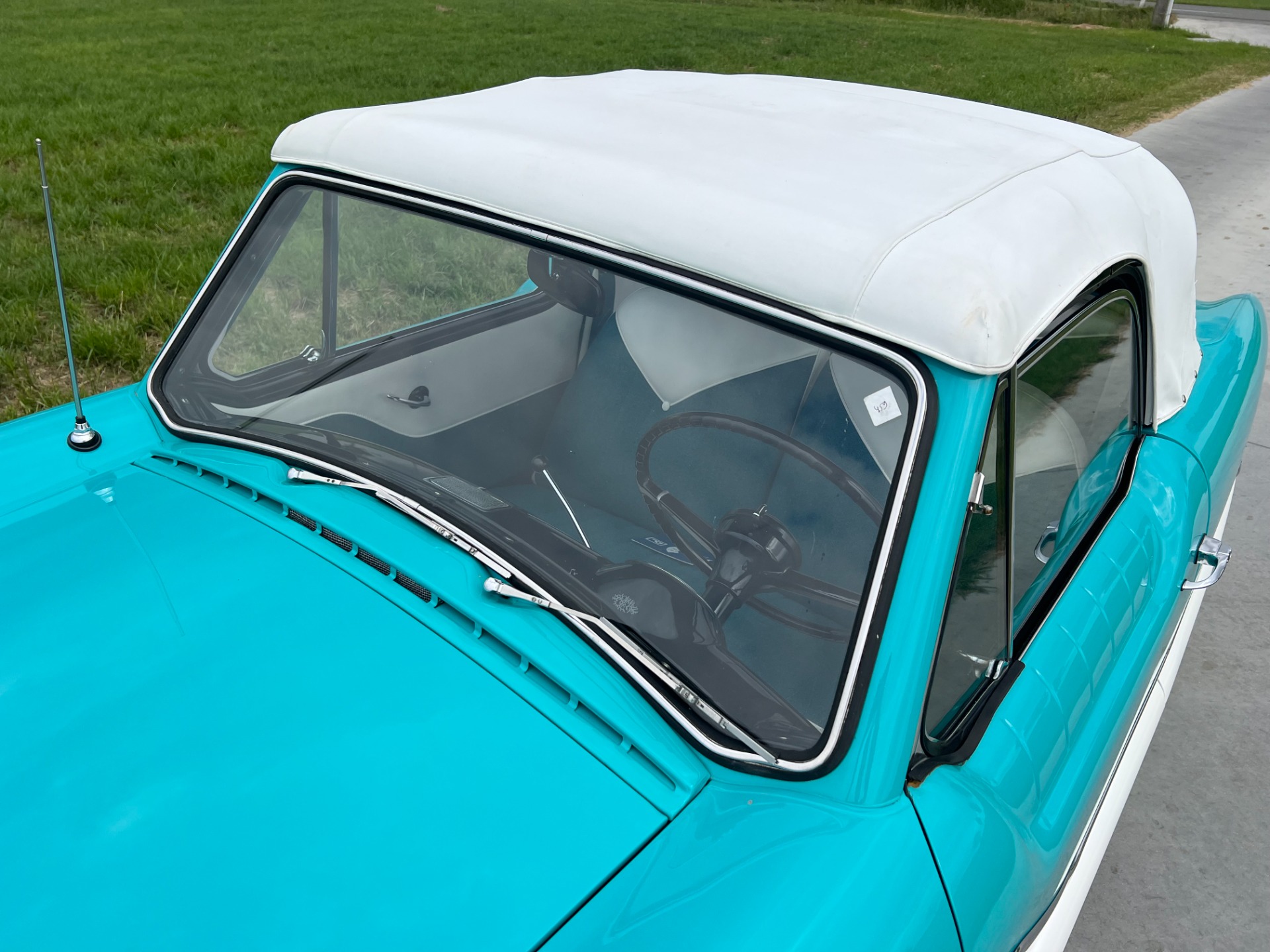 New interior in this cute Nash. The blue interior matches the exterior lovely. There are no flaws at all on the seats, carpets or roof lining.