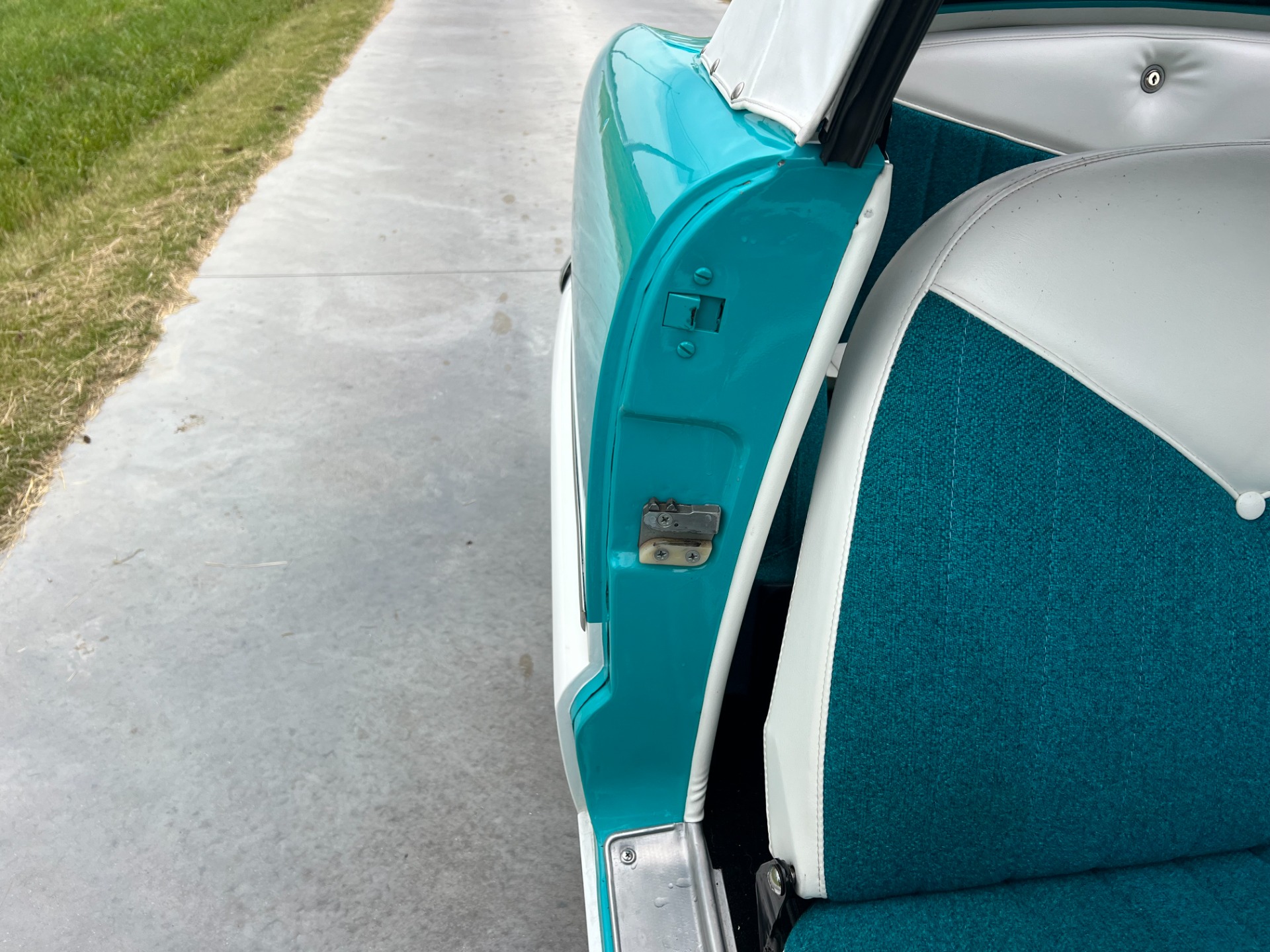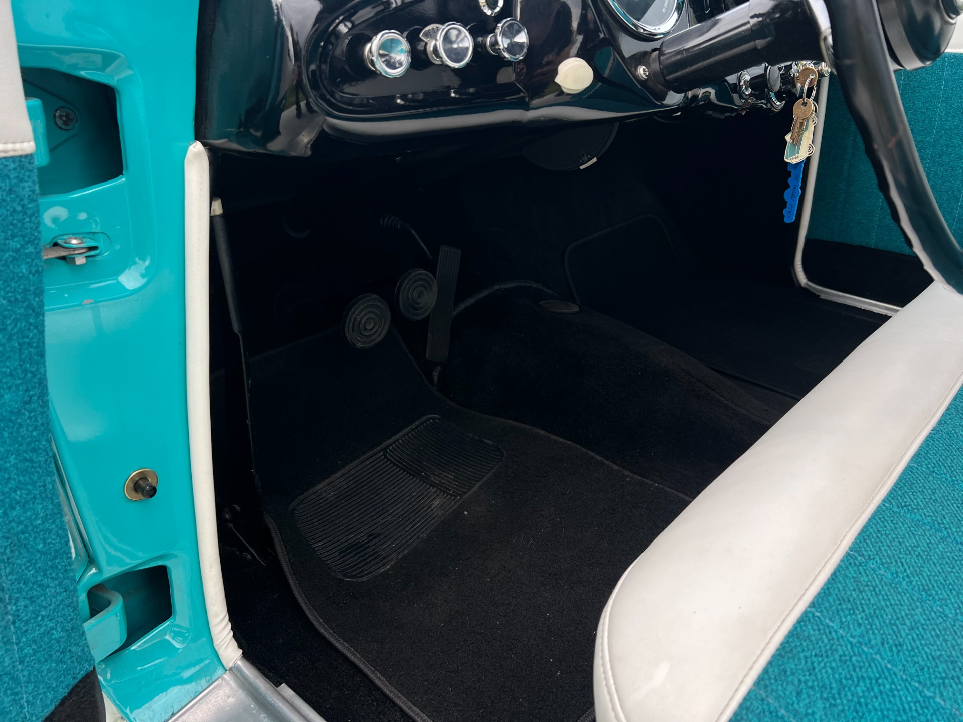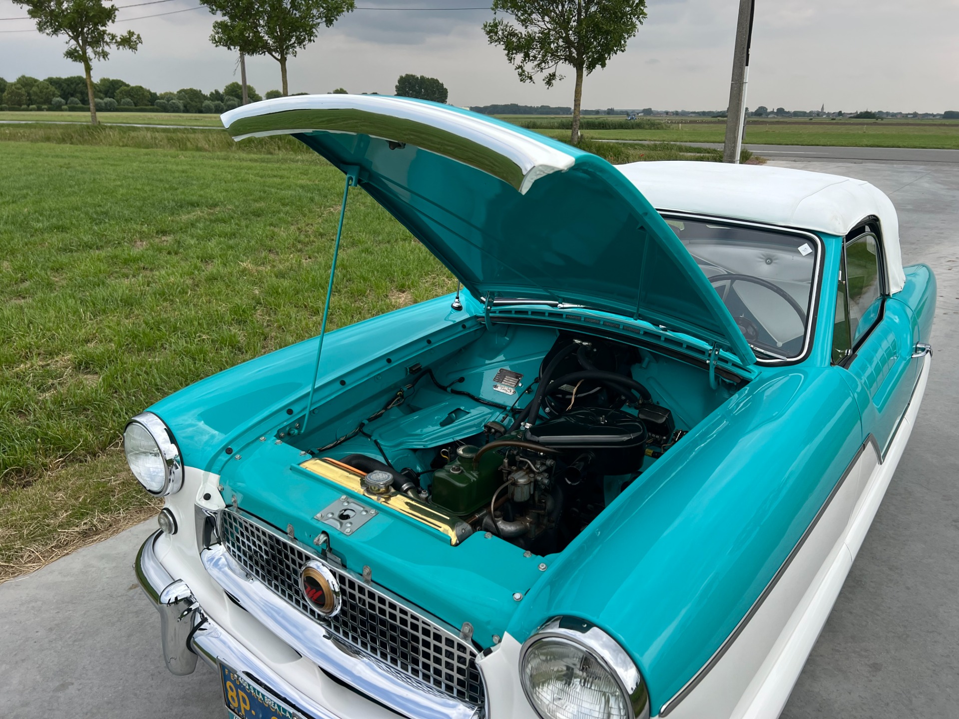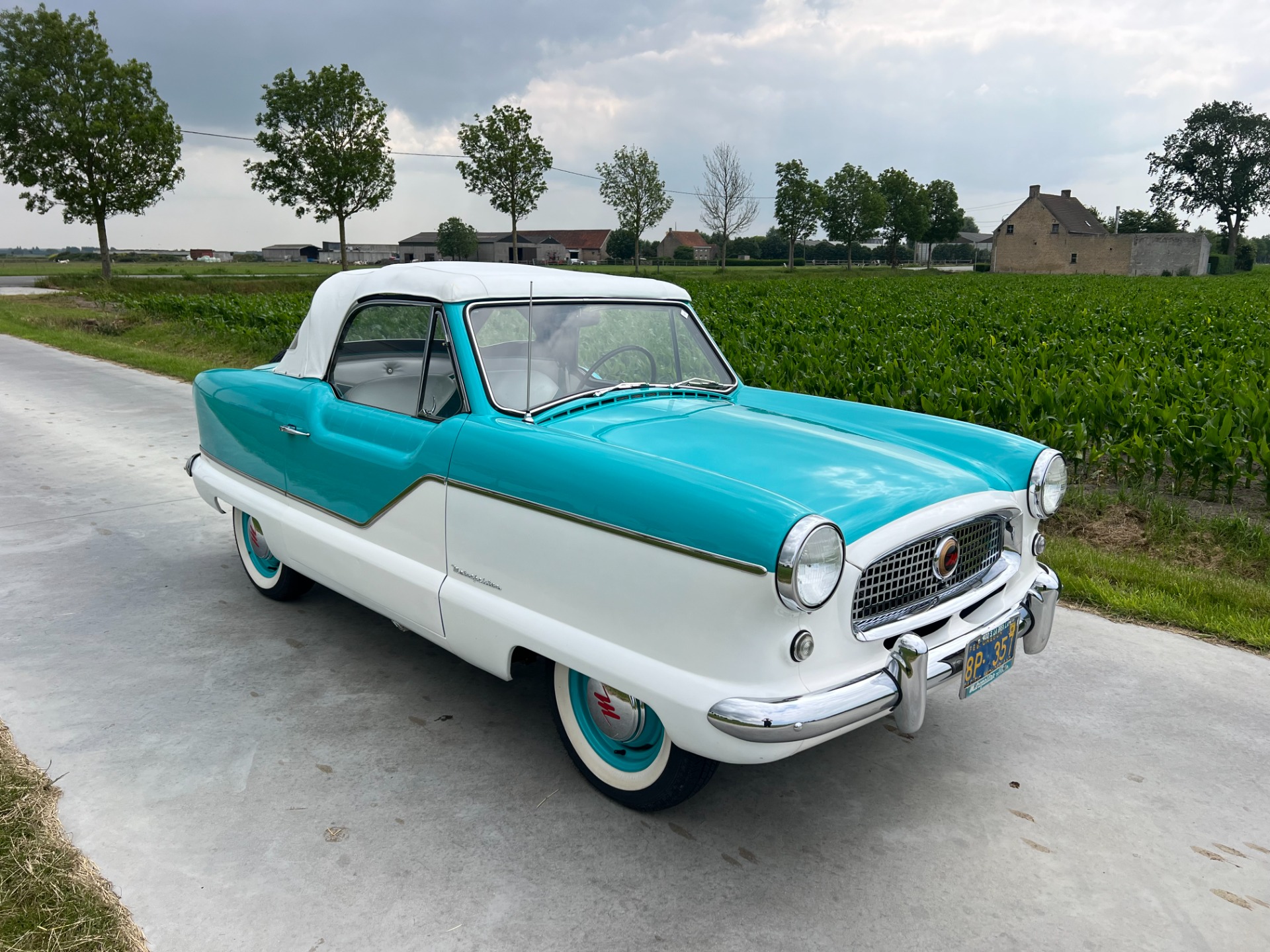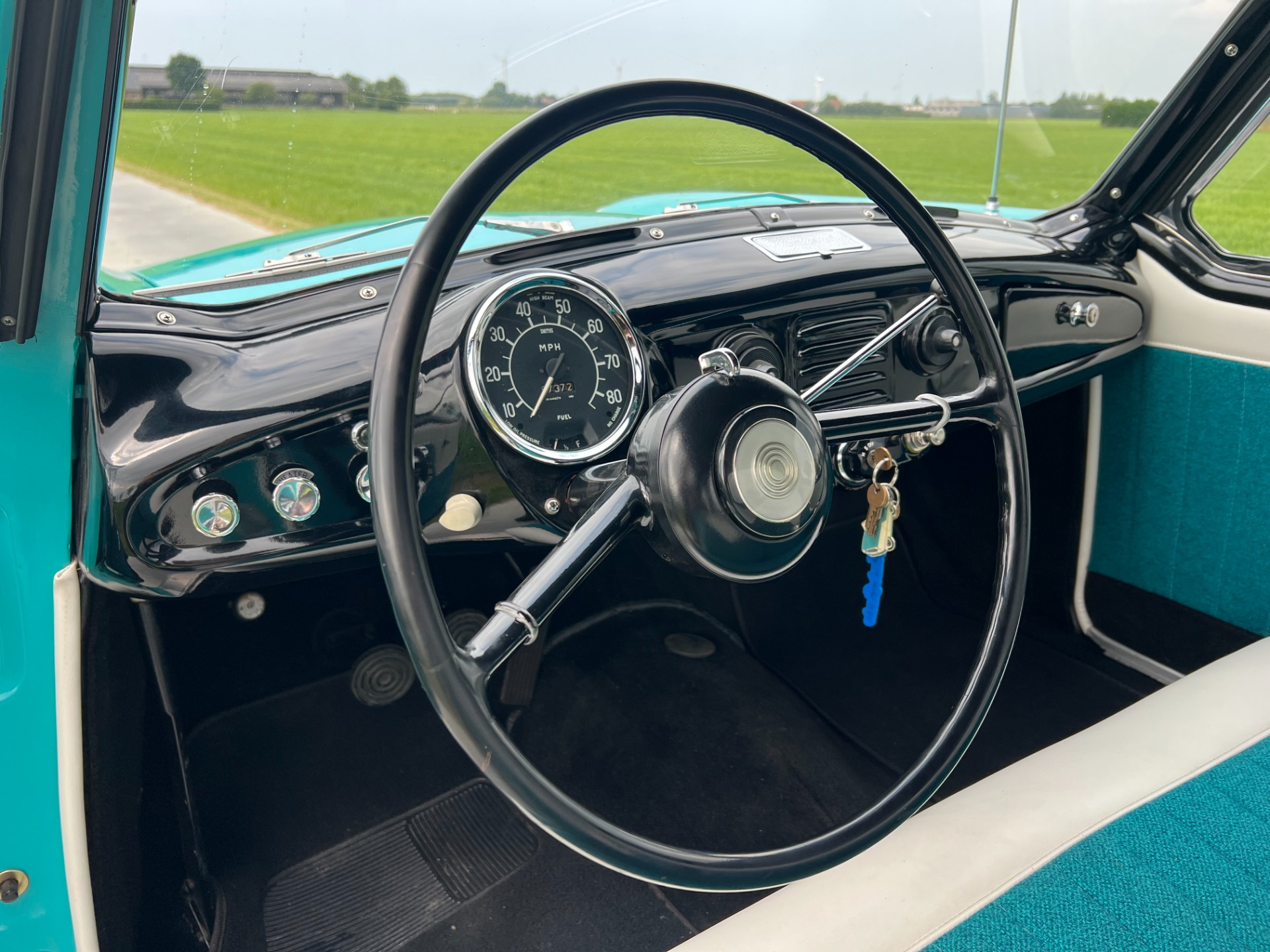 New interior in this cute Nash. The blue interior matches the exterior lovely. There are no flaws at all on the seats, carpets or roof lining.