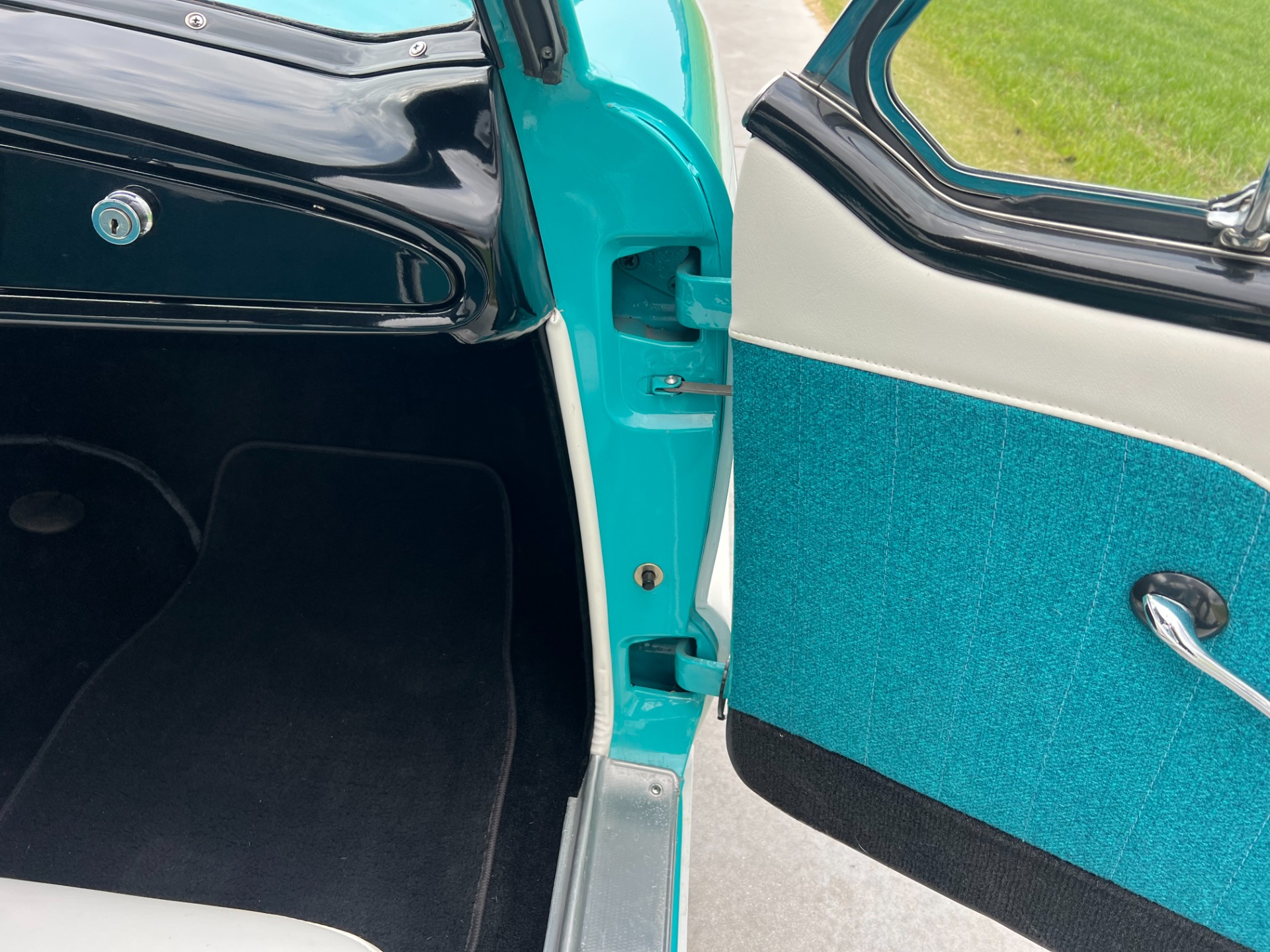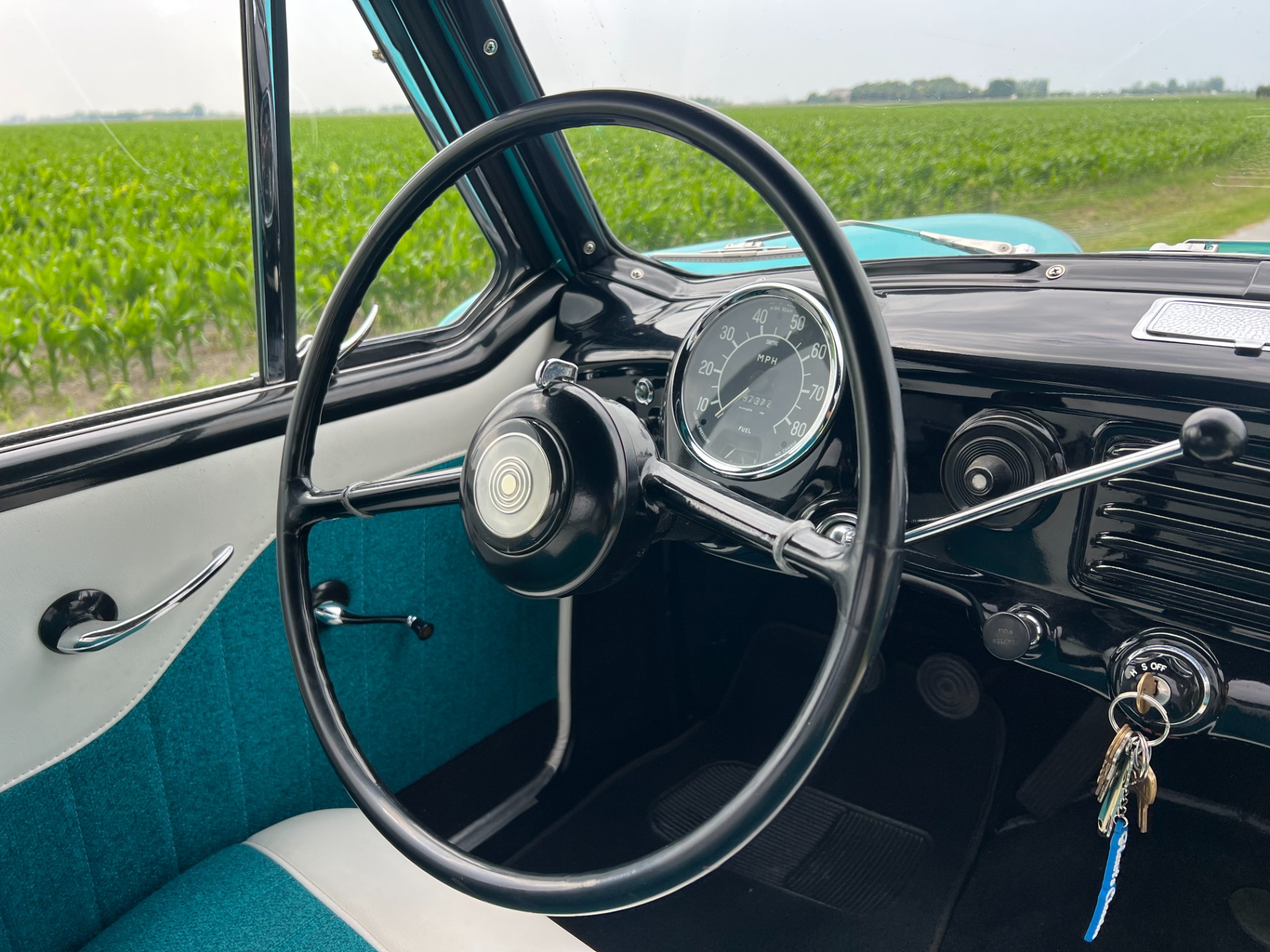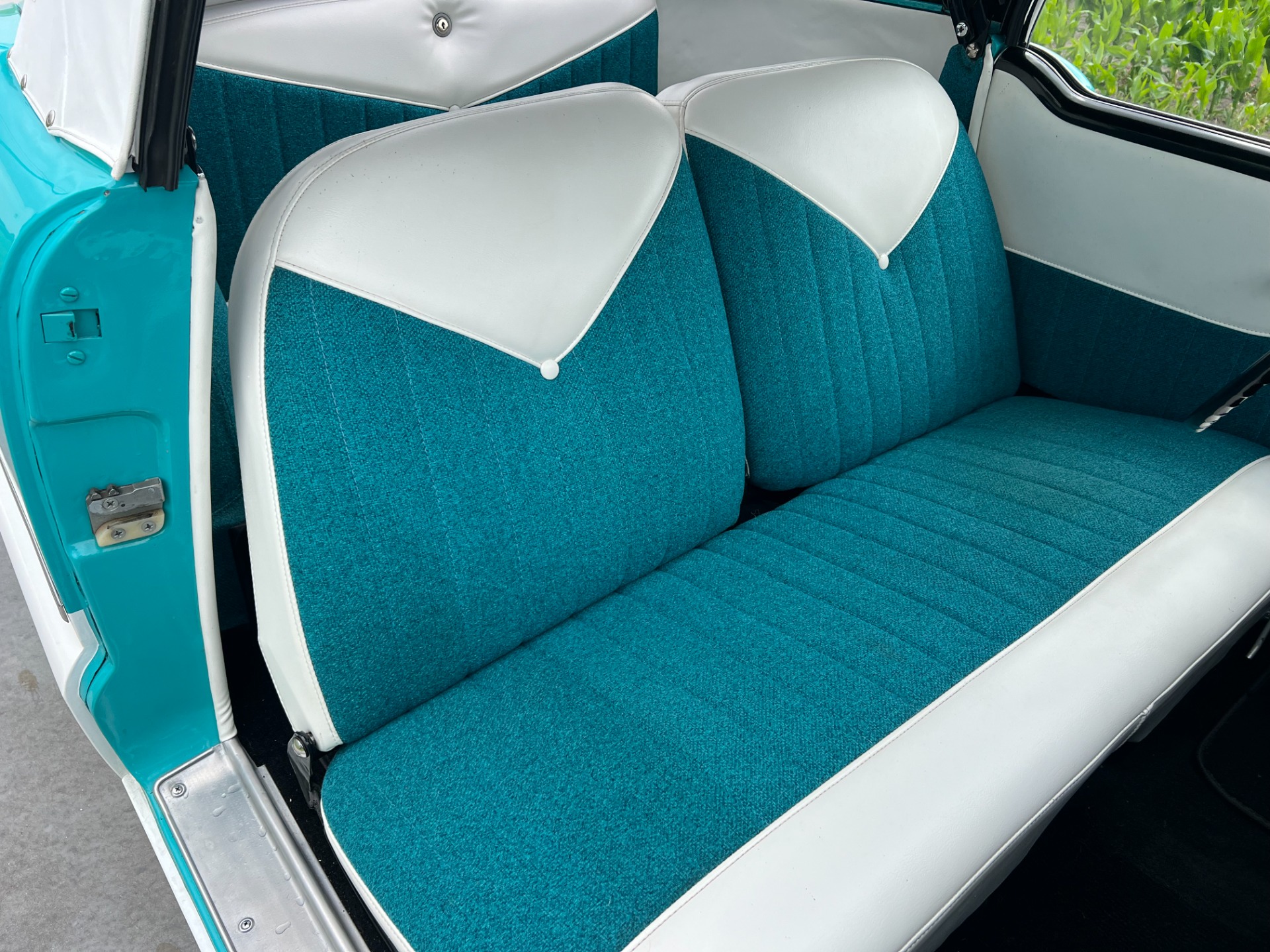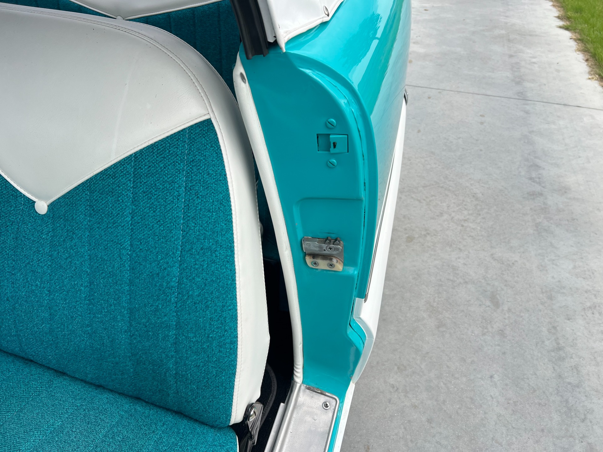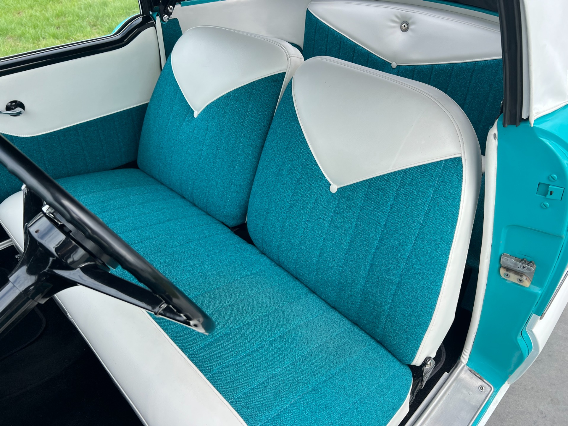New interior in this cute Nash. The blue interior matches the exterior lovely. There are no flaws at all on the seats, carpets or roof lining.