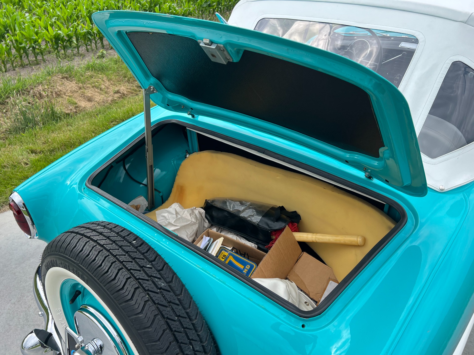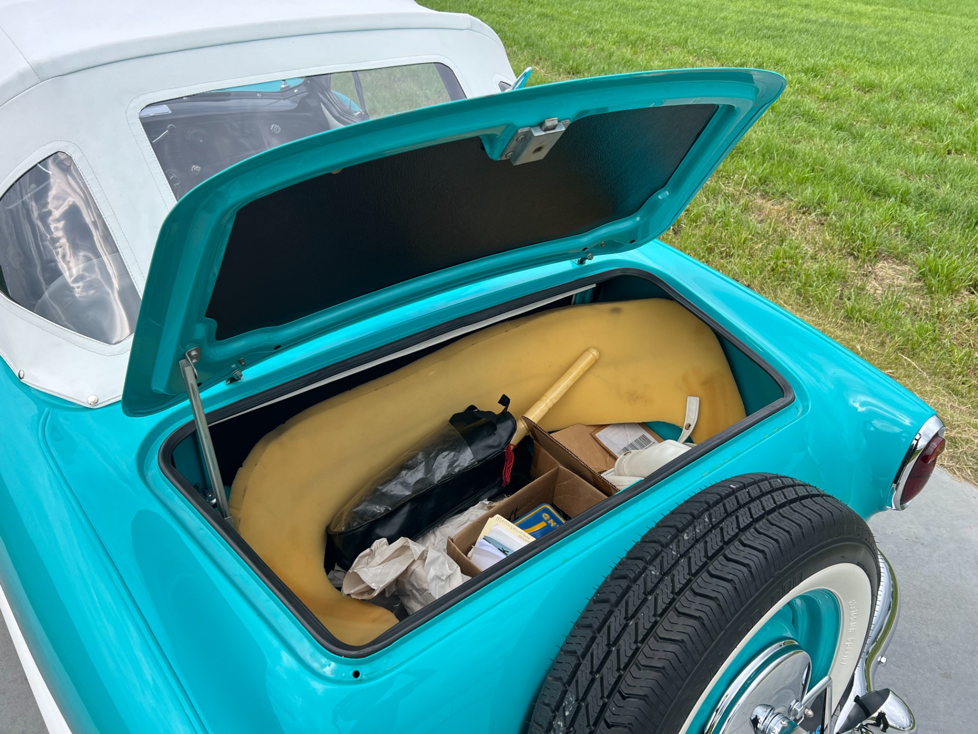 Paint is in very good condition, so is the chrome. Car comes with a soft top which is untouched.